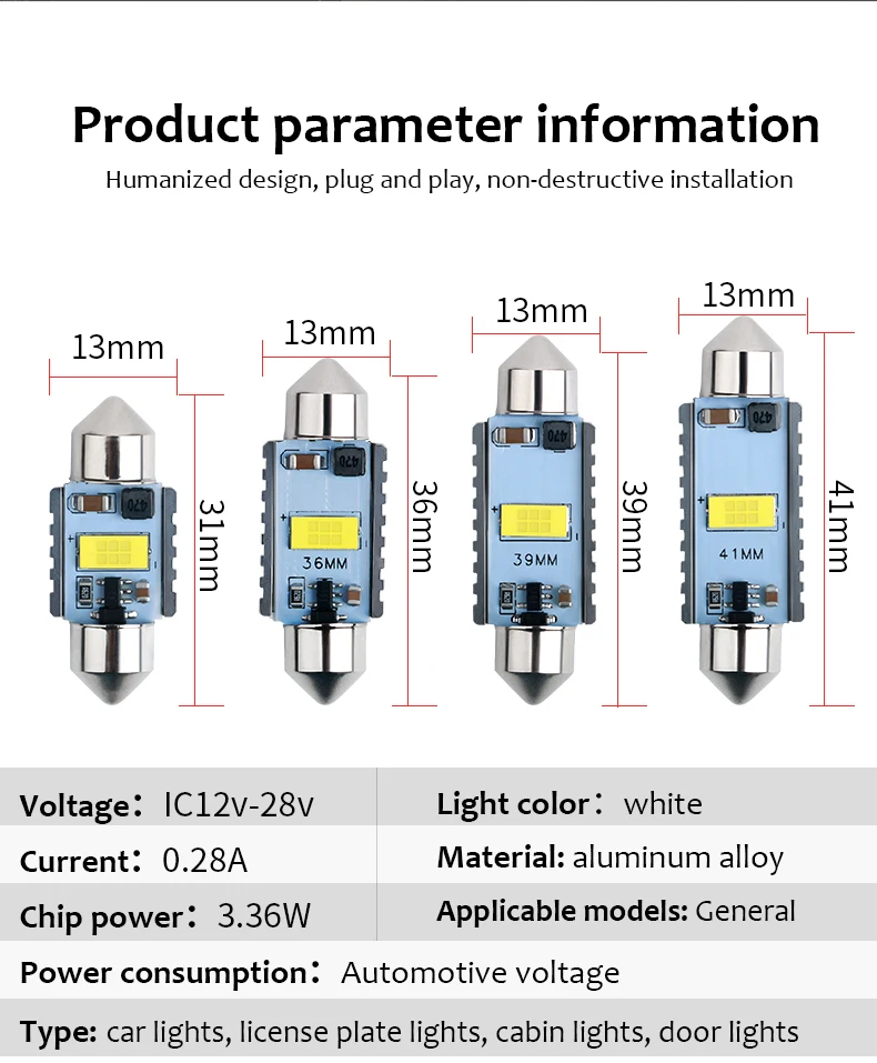 Страна: RU Emitting Color: 31MM Color Temperature: 1 pieces Доставка: Standard Shipping 29.10.2021