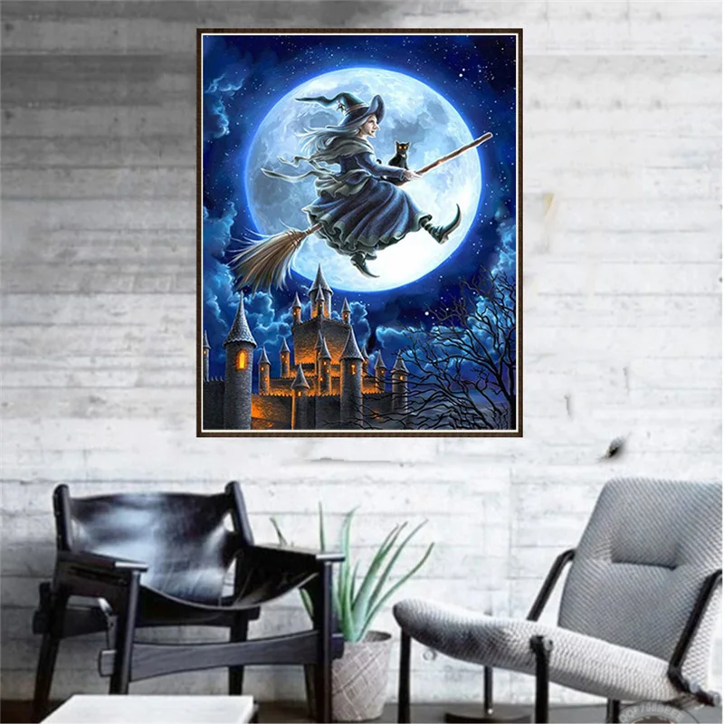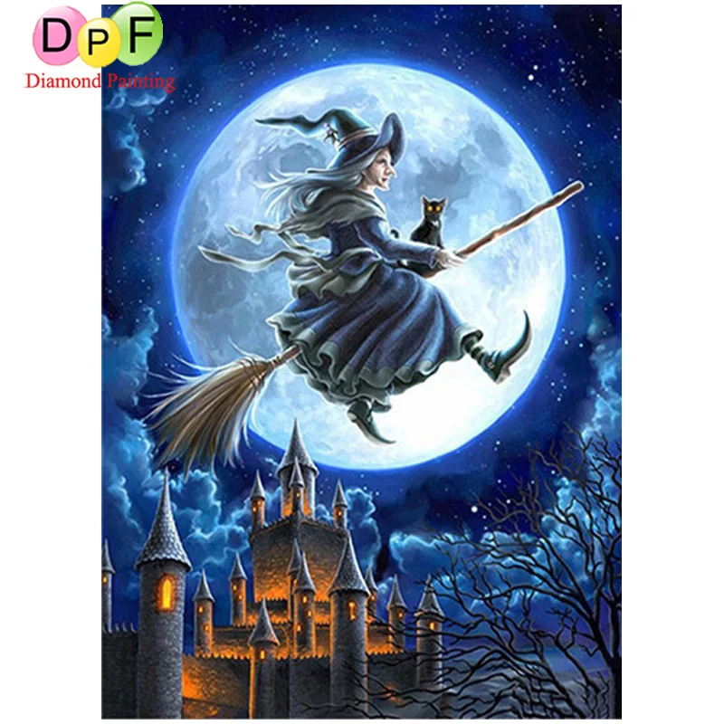 Алмазная живопись DPF 5d, ведьма на Хэллоуин, квадратнаякруглая Алмазная вышивка, набор картин, настенные рождественские украшения