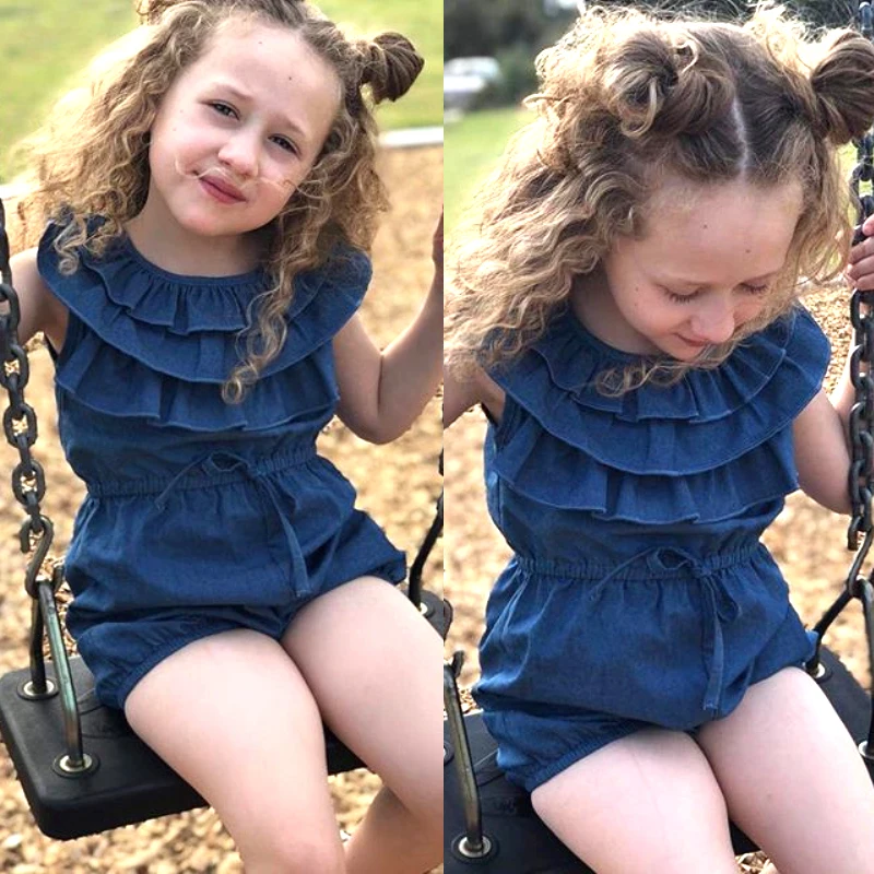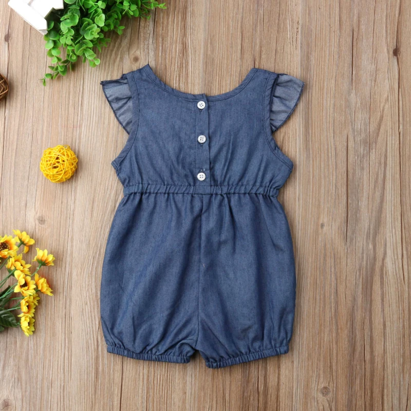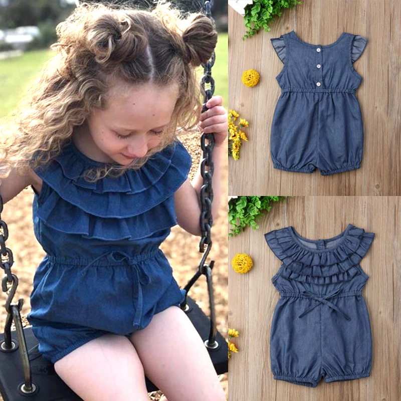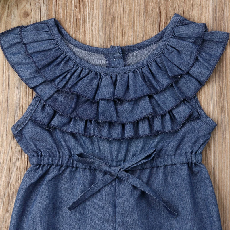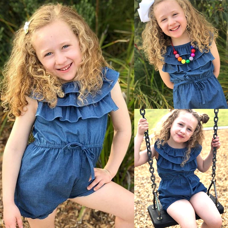 Комбинезон детский джинсовый с оборками, для девочек, Повседневная летняя одежда