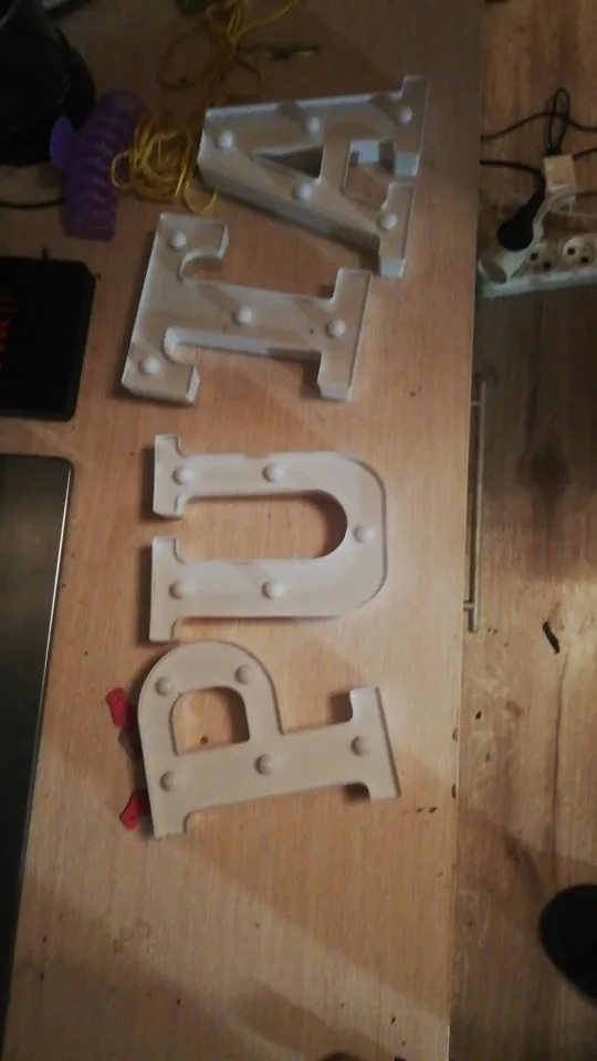 Буквы очень лёгкие, соответственно, не сильно устойчивые. Лампочки не из стекла, это просто пластик, который полсвечивается изнутри.