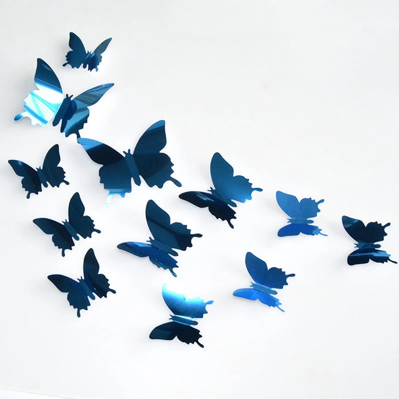 Зеркальная настенная 3d-наклейка в виде бабочки, 12 шт.лот
