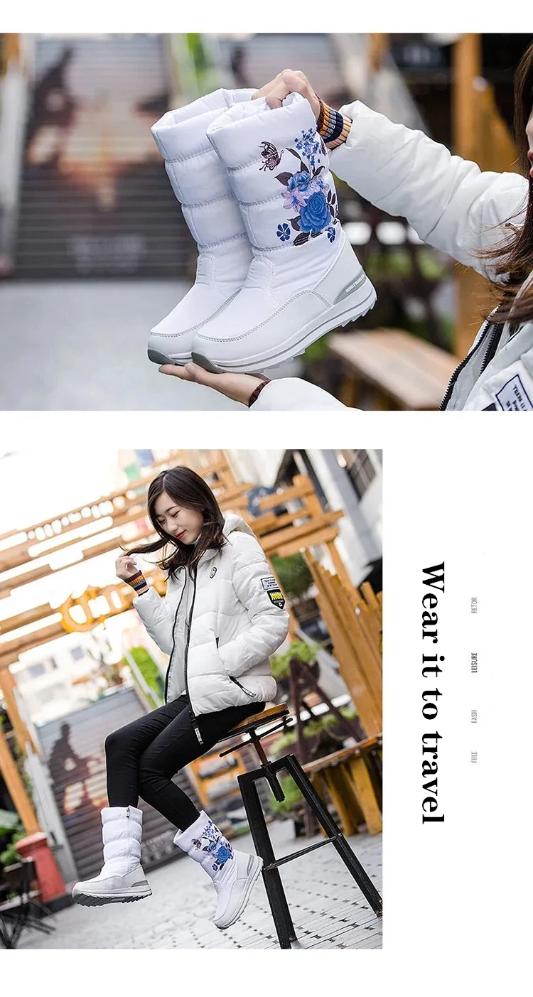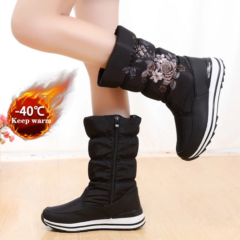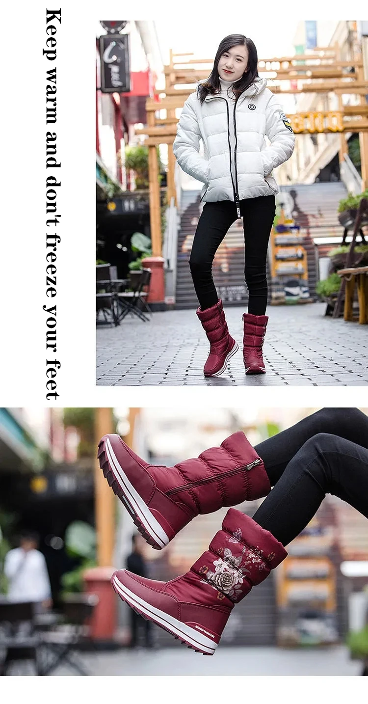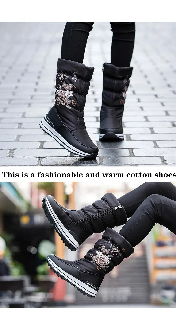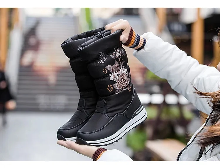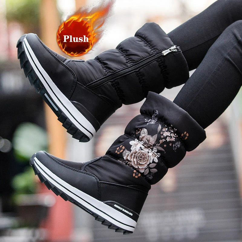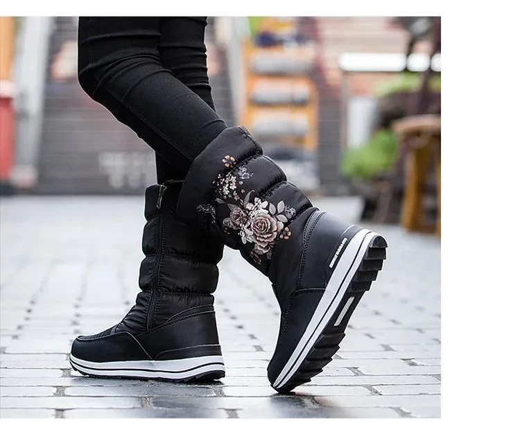 Зимние водонепроницаемые сапоги для снежной погоды, женская повседневная обувь на платформе с цветочным украшением, женская теплая обувь, новинка 2020, женские сапоги из кашемира с мехом
