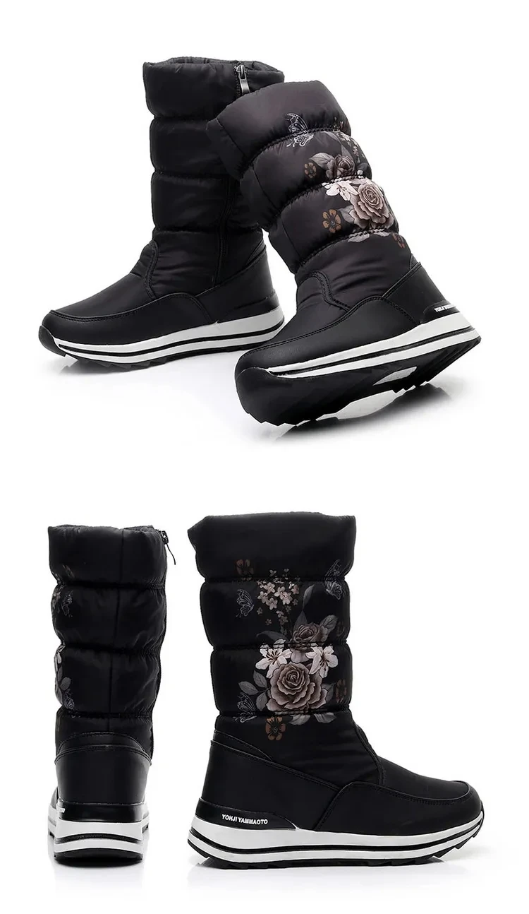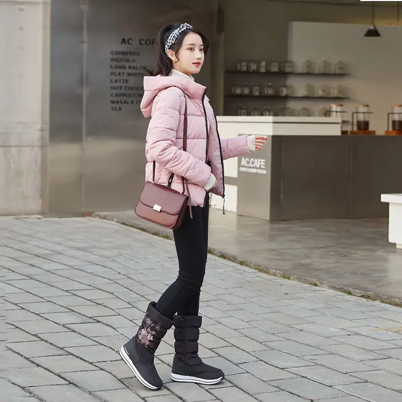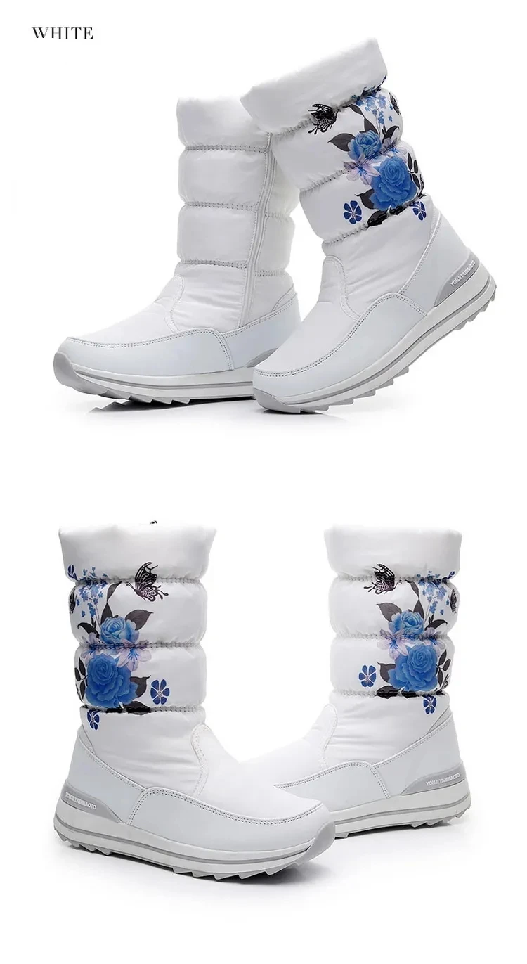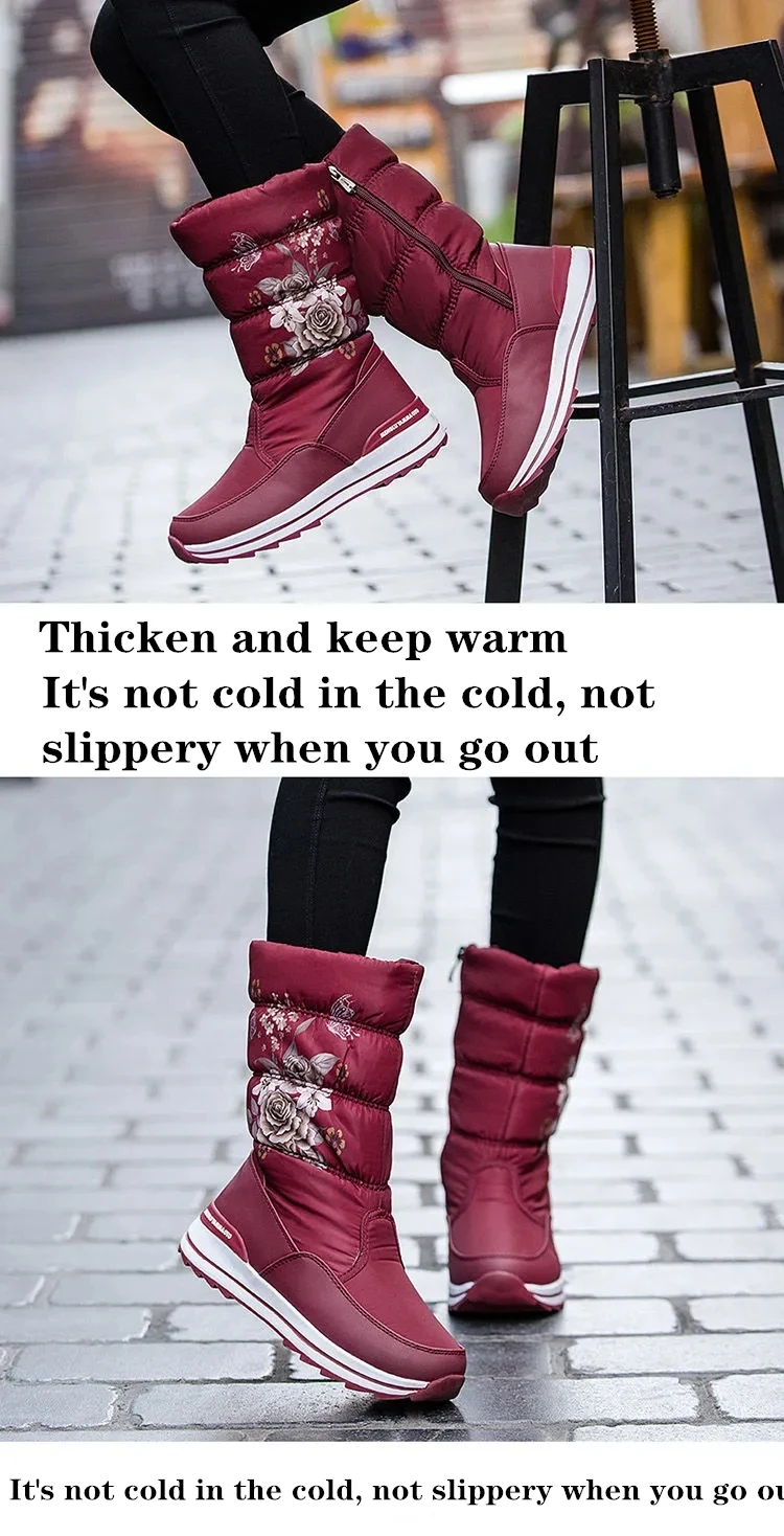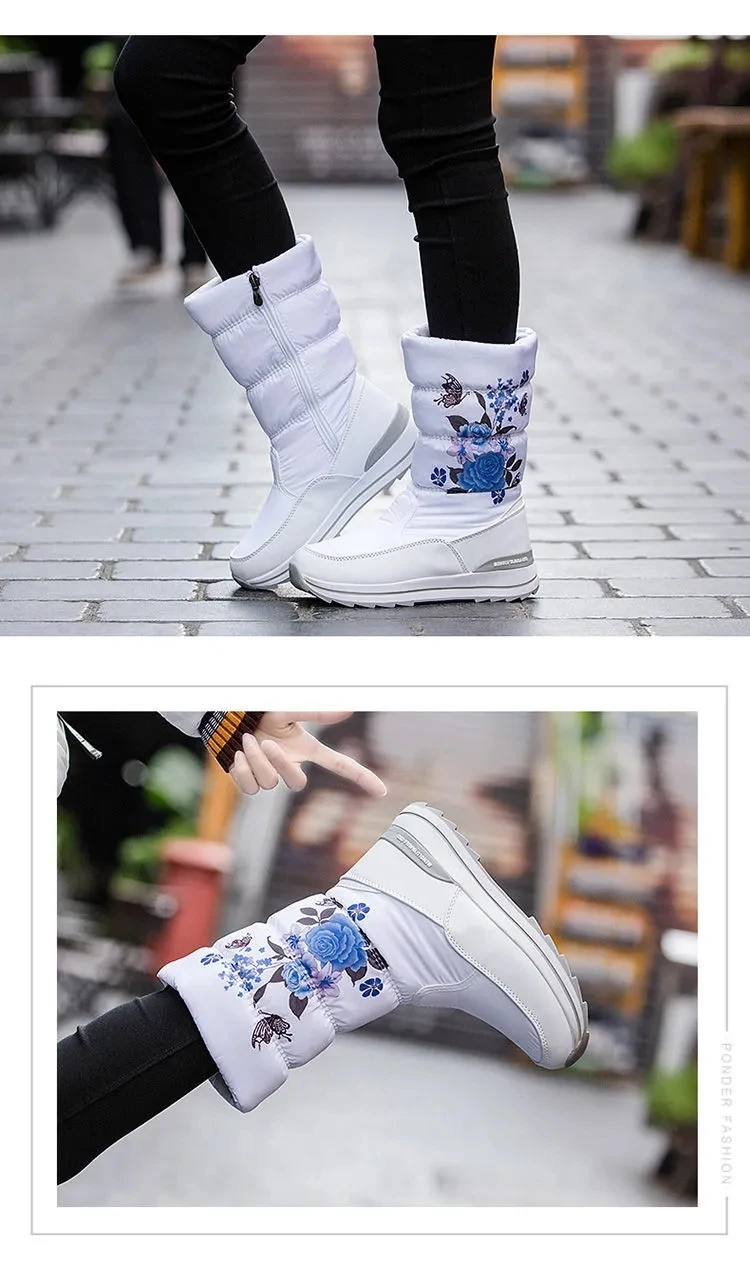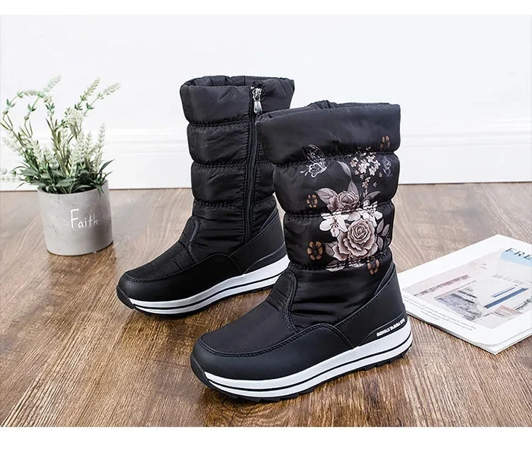 Зимние водонепроницаемые сапоги для снежной погоды, женская повседневная обувь на платформе с цветочным украшением, женская теплая обувь, новинка 2020, женские сапоги из кашемира с мехом