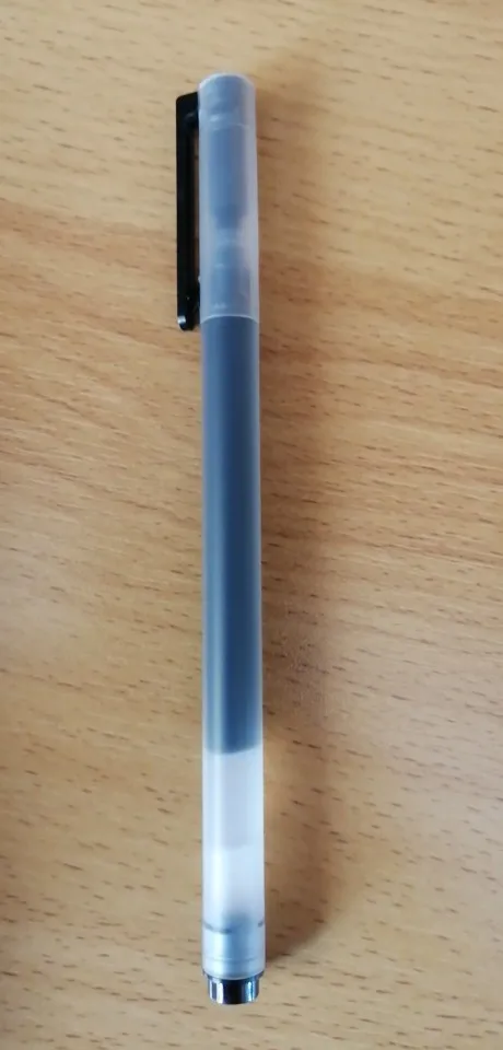 Ручка выглядит как большой толстый стержень :) Объем чернил выглядит большим - скорее всего такой ручки должно хватать надолго. Колпачок хорошо фиксируется при закрывании. Внутри колпачка есть впитывающий защитный материал Утилитарная ручка, без особого дизайна и эргономики