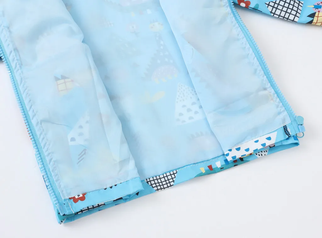 Детская осенняя куртка с принтом для мальчиков и девочек, ветрозащитное пальто на молнии с капюшоном