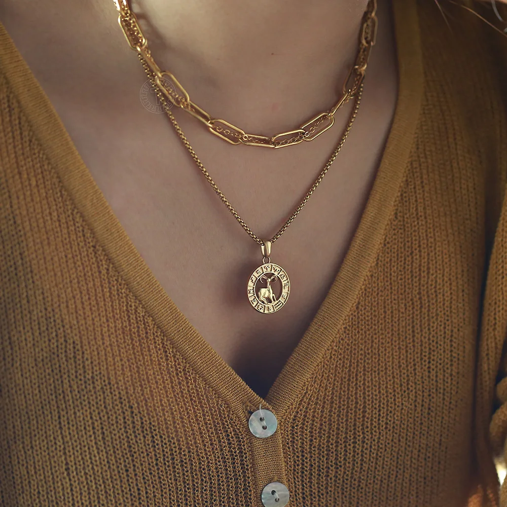 Цепочка с подвесками 12 созвездий зодиака, ожерелье золотого и серебряного цвета, гороскоп с кулоном-монеткой, Подарочная бижутерия