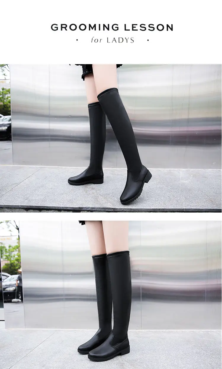 Женские сапоги выше колена из искусственной кожи, на плоской подошве, на низком каблуке, высокие эластичные сапоги ZUZI, 2021