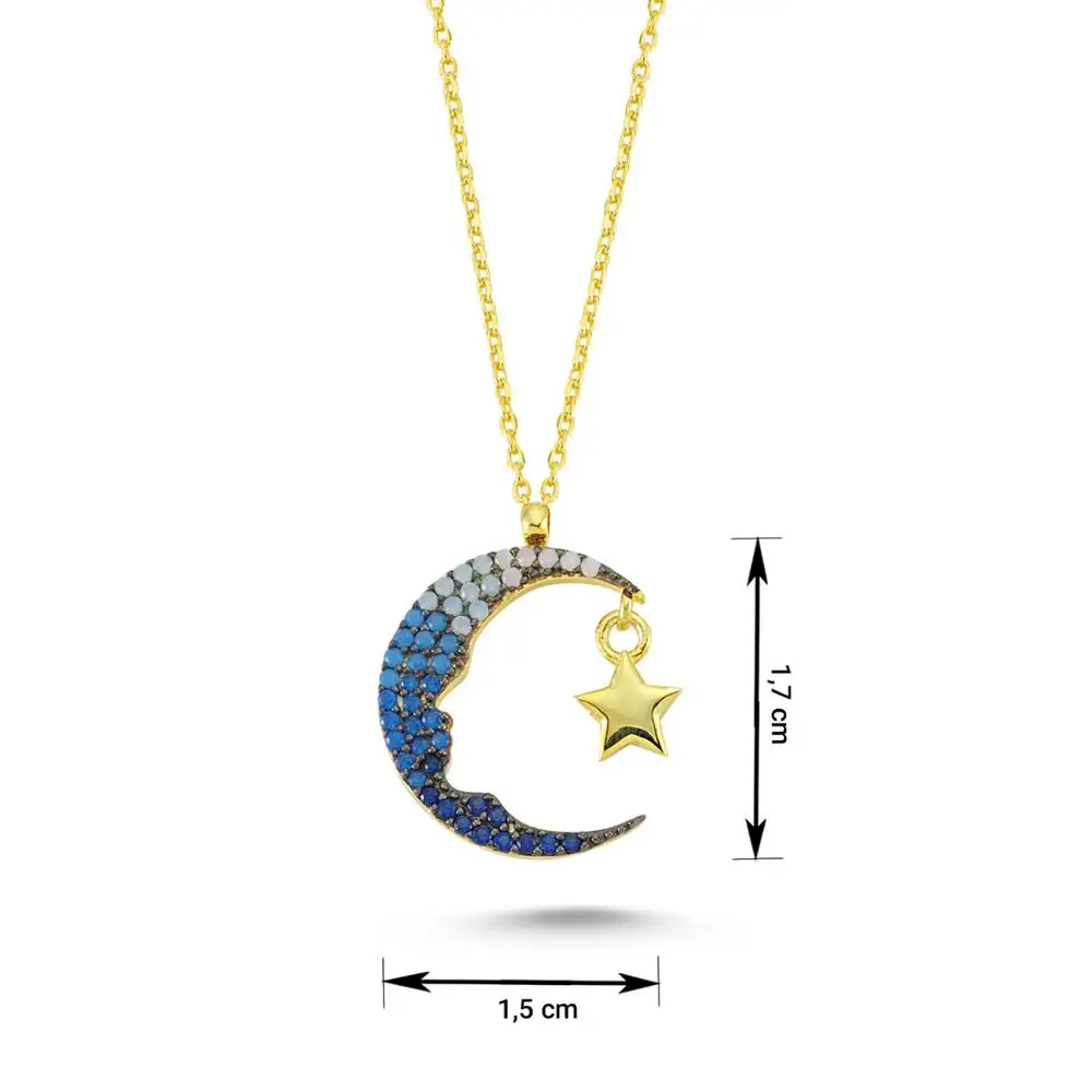 14k (585) золотой желтый цвет 1,62 г вес 45 см длина цепи красочные циркониевые камни Луна и звезда Ататюрка кулон, ожерелье.