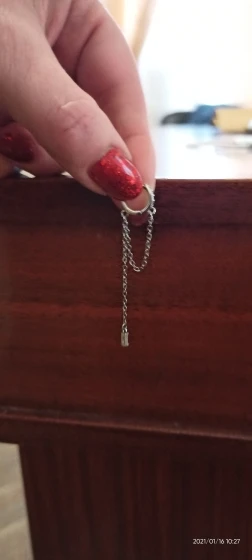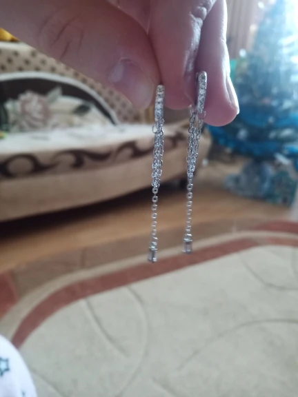 Боялась, что на мою огромную мочку будет маловата застежка, но боялась зря! Всё подошло) аккуратные, выглядят как серебрянные. Единственный минус, что стразик внизу смотрит почему то внутрь. Не совсем поняла в чем прикол и как можно было так ошибиться на производстве, но думаю это врядли кто то кроме меня заметит. В целом сережки оочень понравились!
