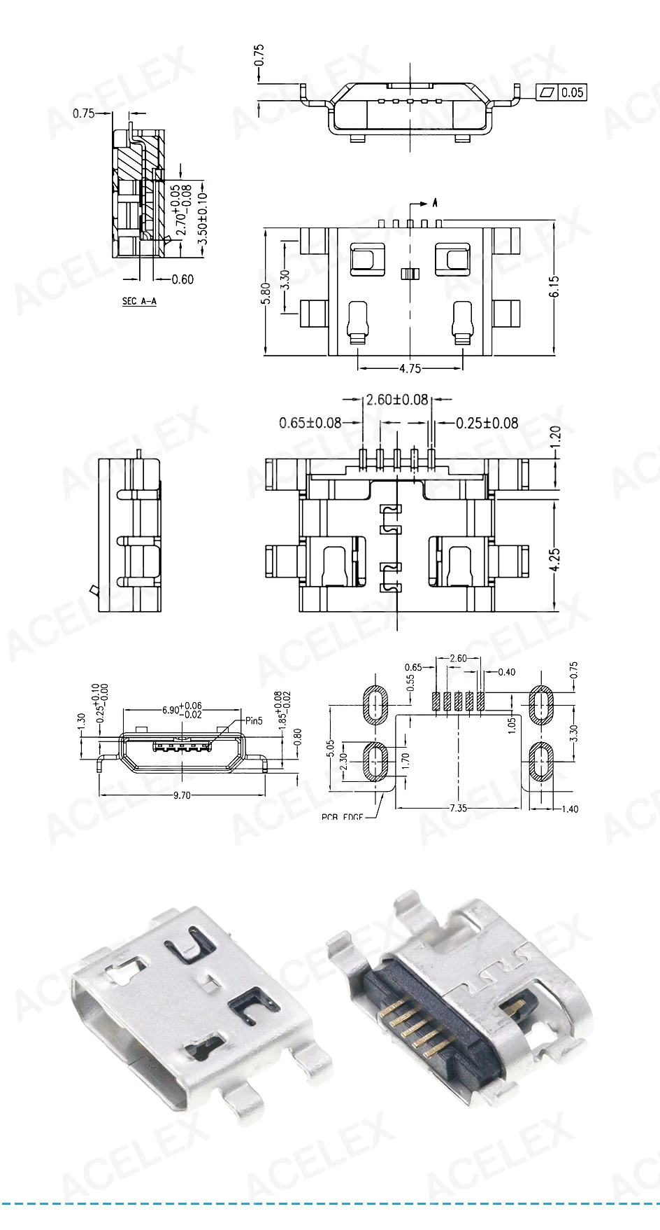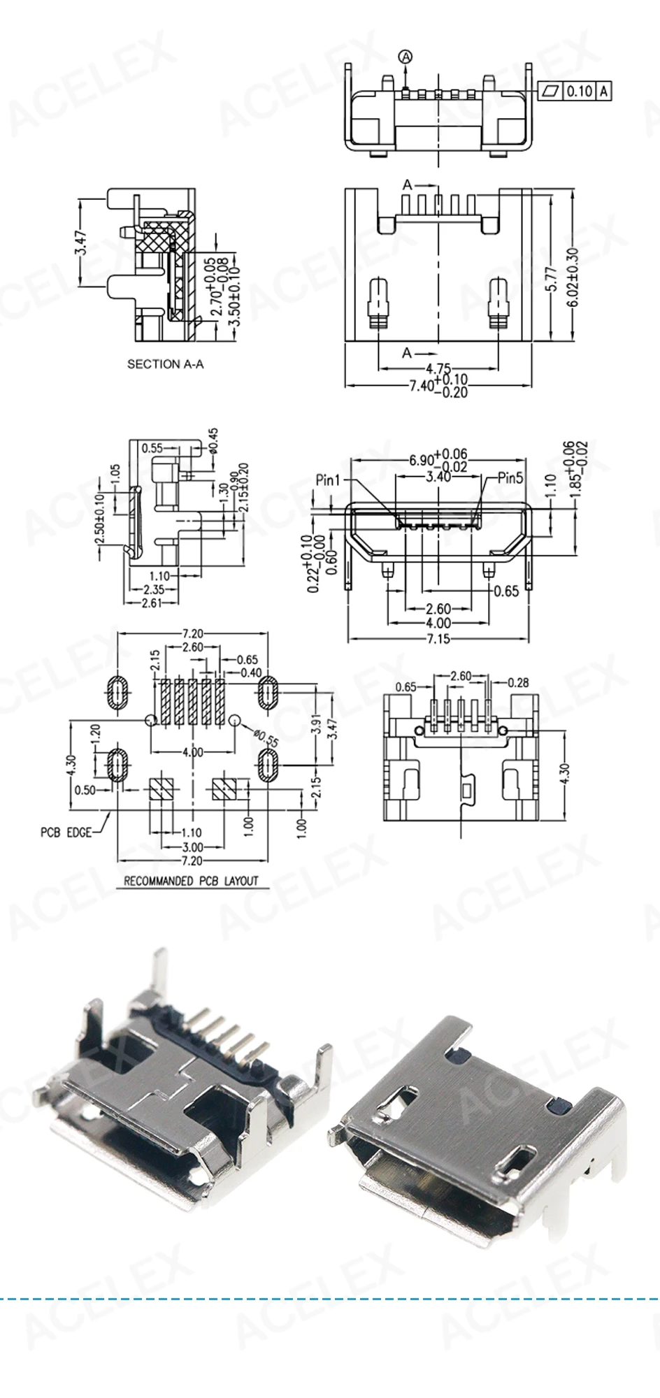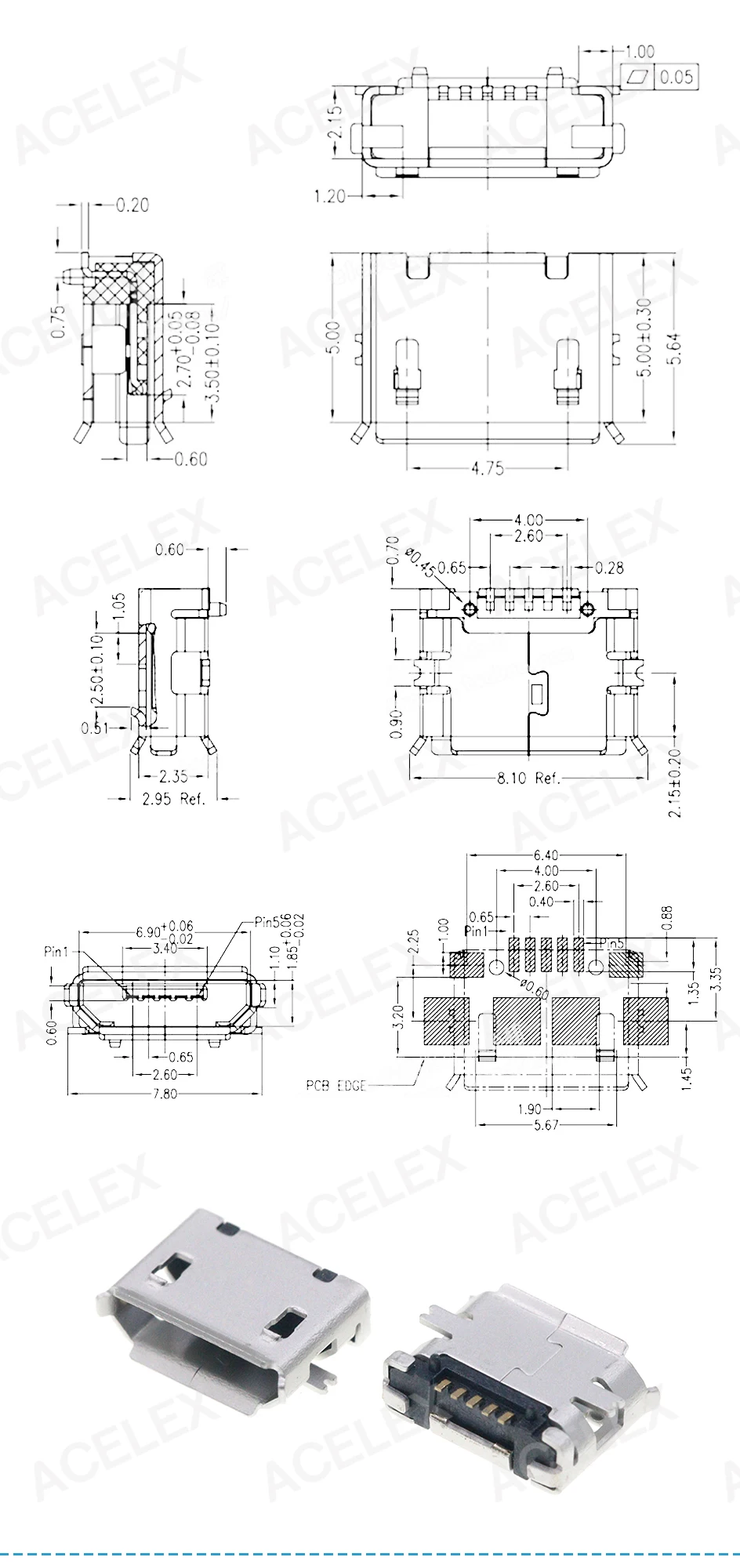 Разъемы Micro USB разъем SMT в комплект поставки входит адаптер 5 P...