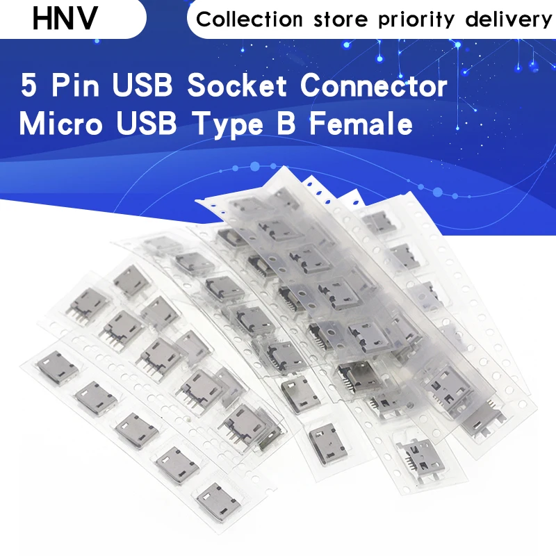 60pcslot 5 Pin SMT Socket Connector Micro USB Type B Female Placeme...