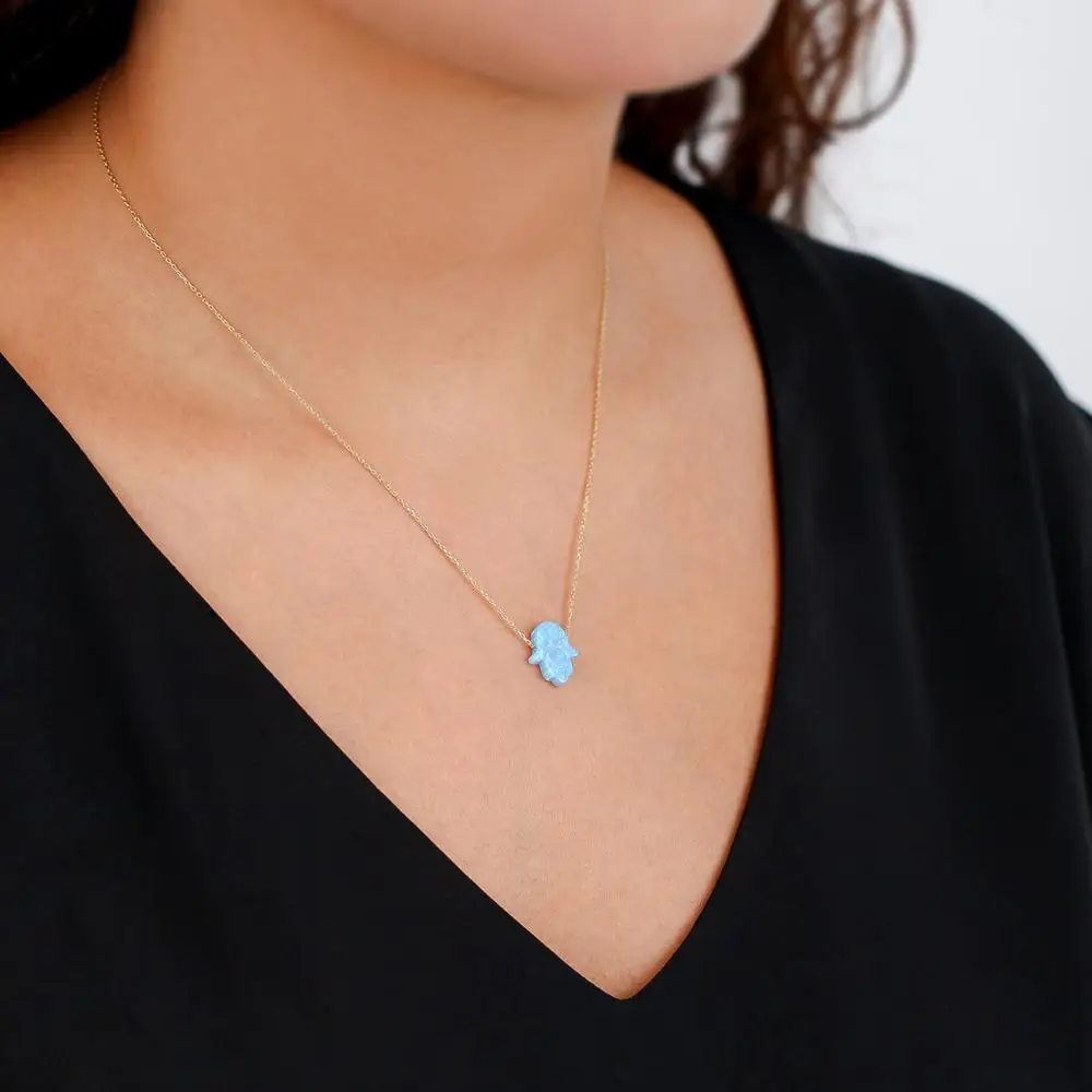 14k (585) золотой опал каменная Хамса ручная подвеска, ожерелье