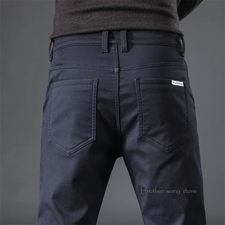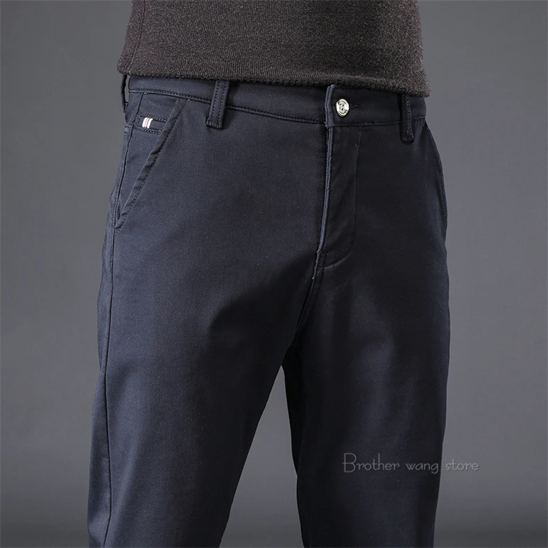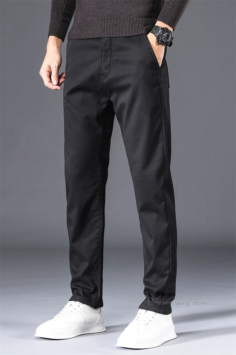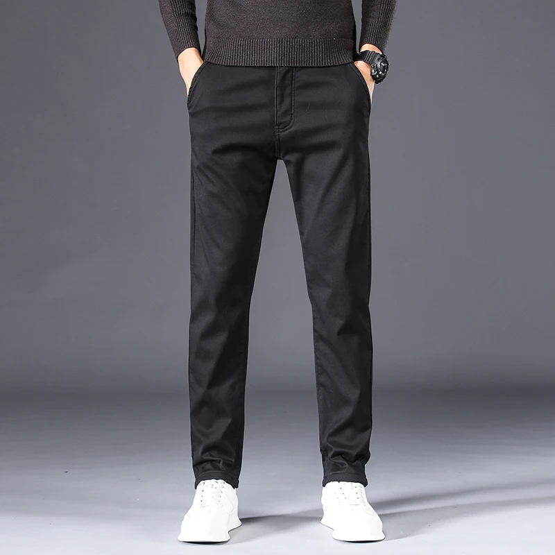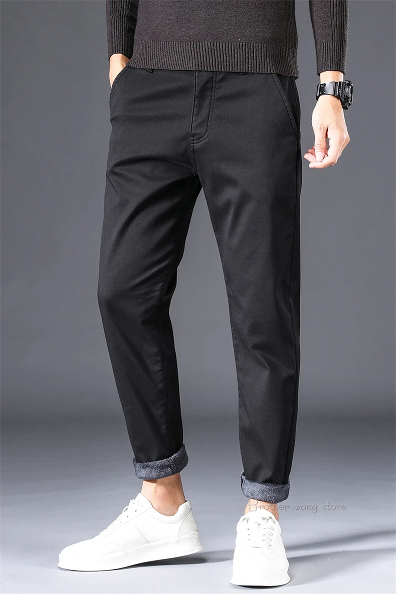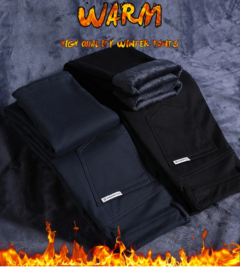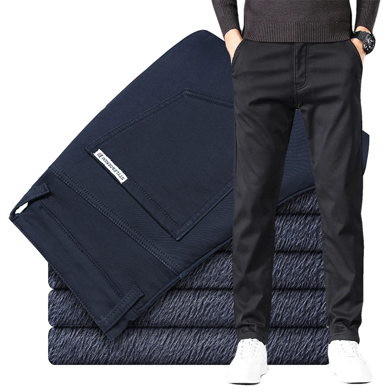 Брюки мужские зимние, черные, синие, на флисе, теплые, повседневные, деловые, зауженные, 2020