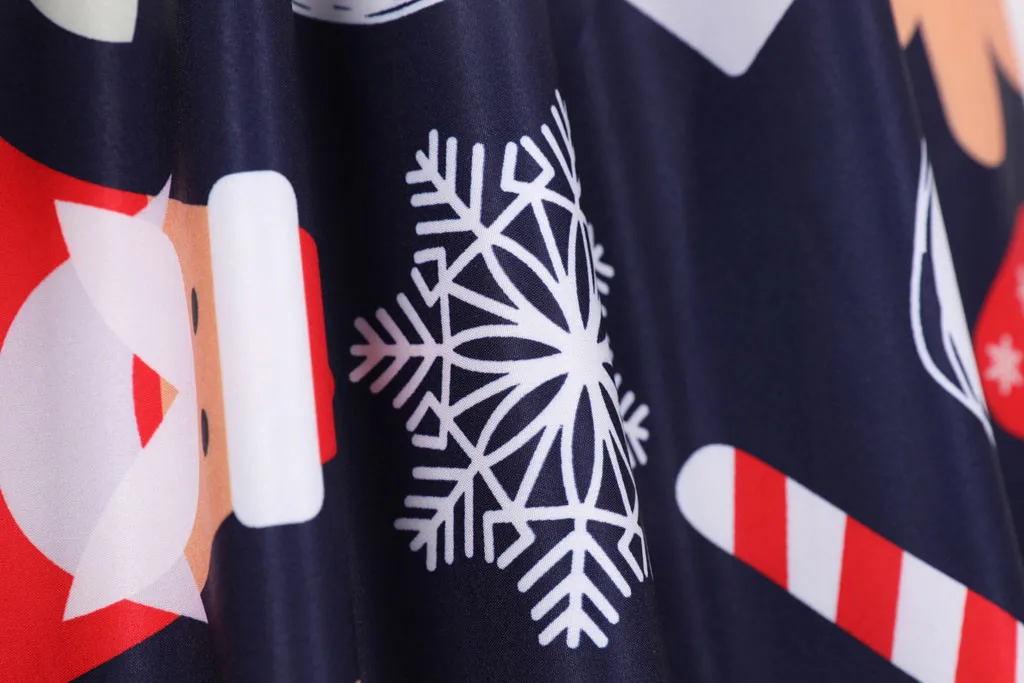 Винтаж Прошитый Рождественский принт плюс Европейский королевский стиль дает вам ретро И элегантный вид; Облегающий и расклешенный силуэт выравнивает вашу фигуру