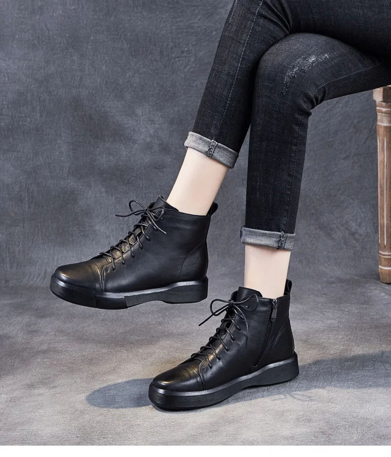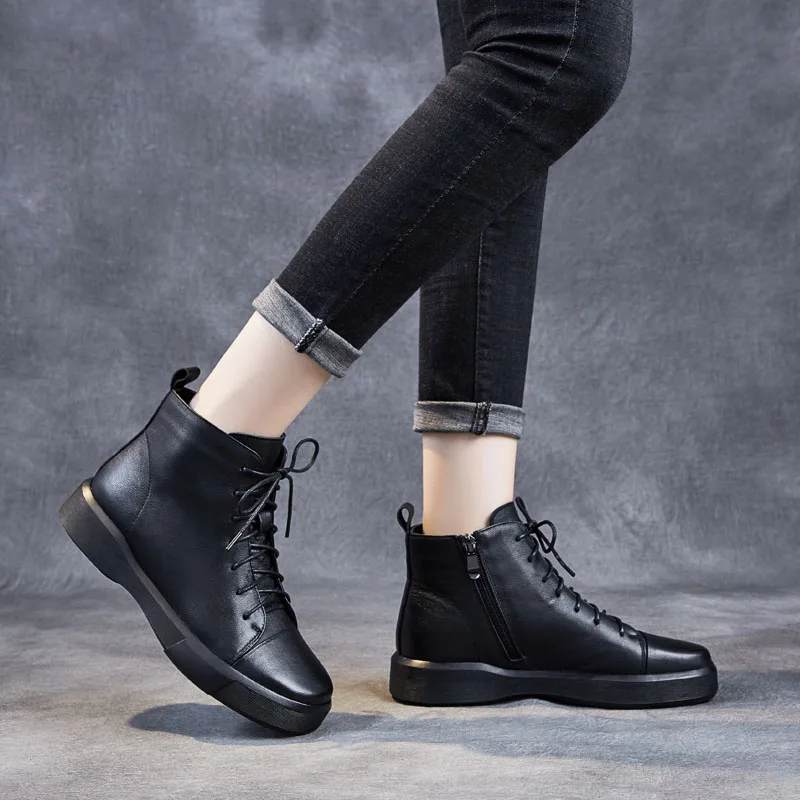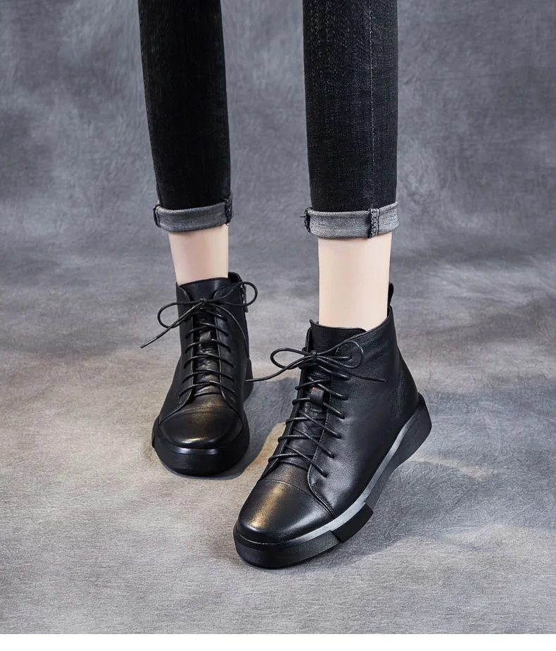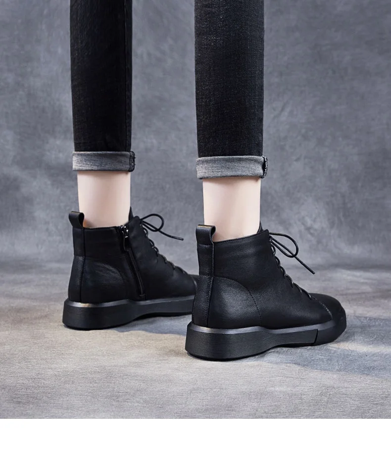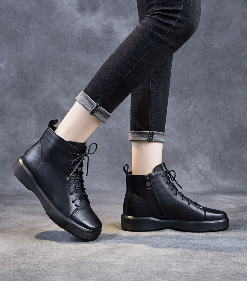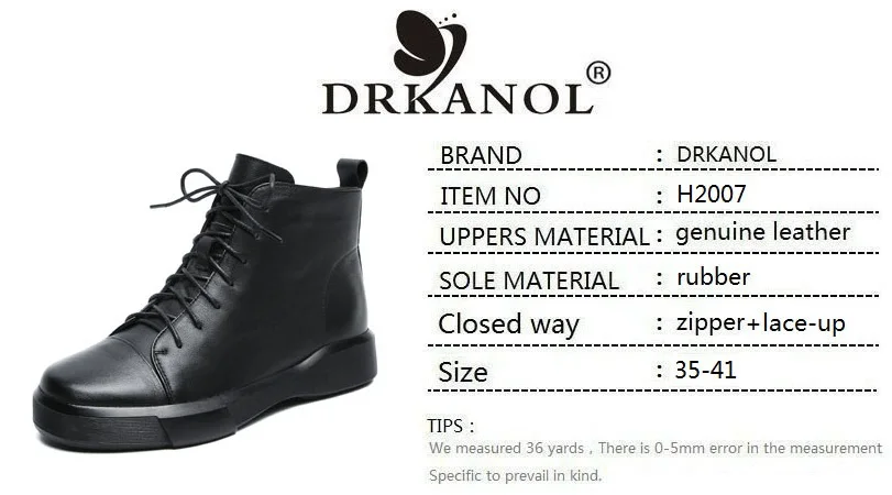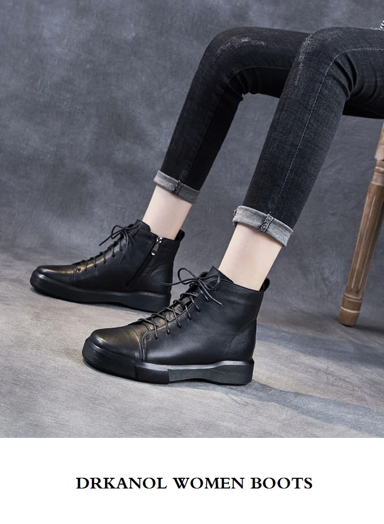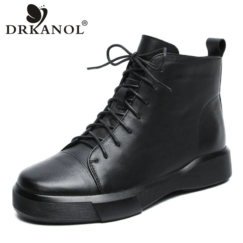 DRKANOLклассические черные женские ботинки 2021 г. Осенне-зимняя теплая обувь женские ботильоны из натуральной кожи сапоги на мягкой подошве ручной работы на плоской подошве