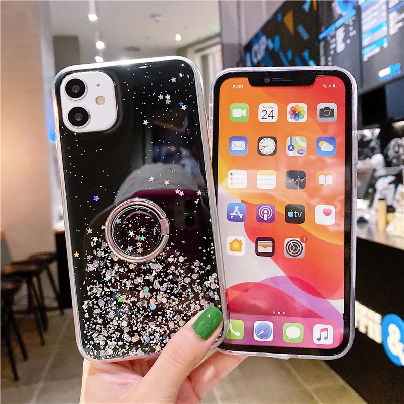 360 градусов вращающийся держатель кольца Блестящий Звездное небо желе эпоксидный силиконовый чехол для iphone 11Pro MAX XS XR SE2 7 8plus чехол для телефона