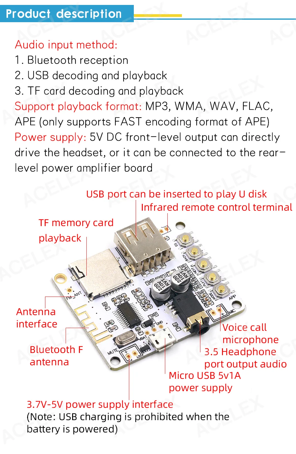 Плата аудио-ресивера с разъемом для USB TF-карты, декодирование воспроизведения предусилителя, выход A7-004 5 в 2,1, беспроводной стерео музыкальный модуль