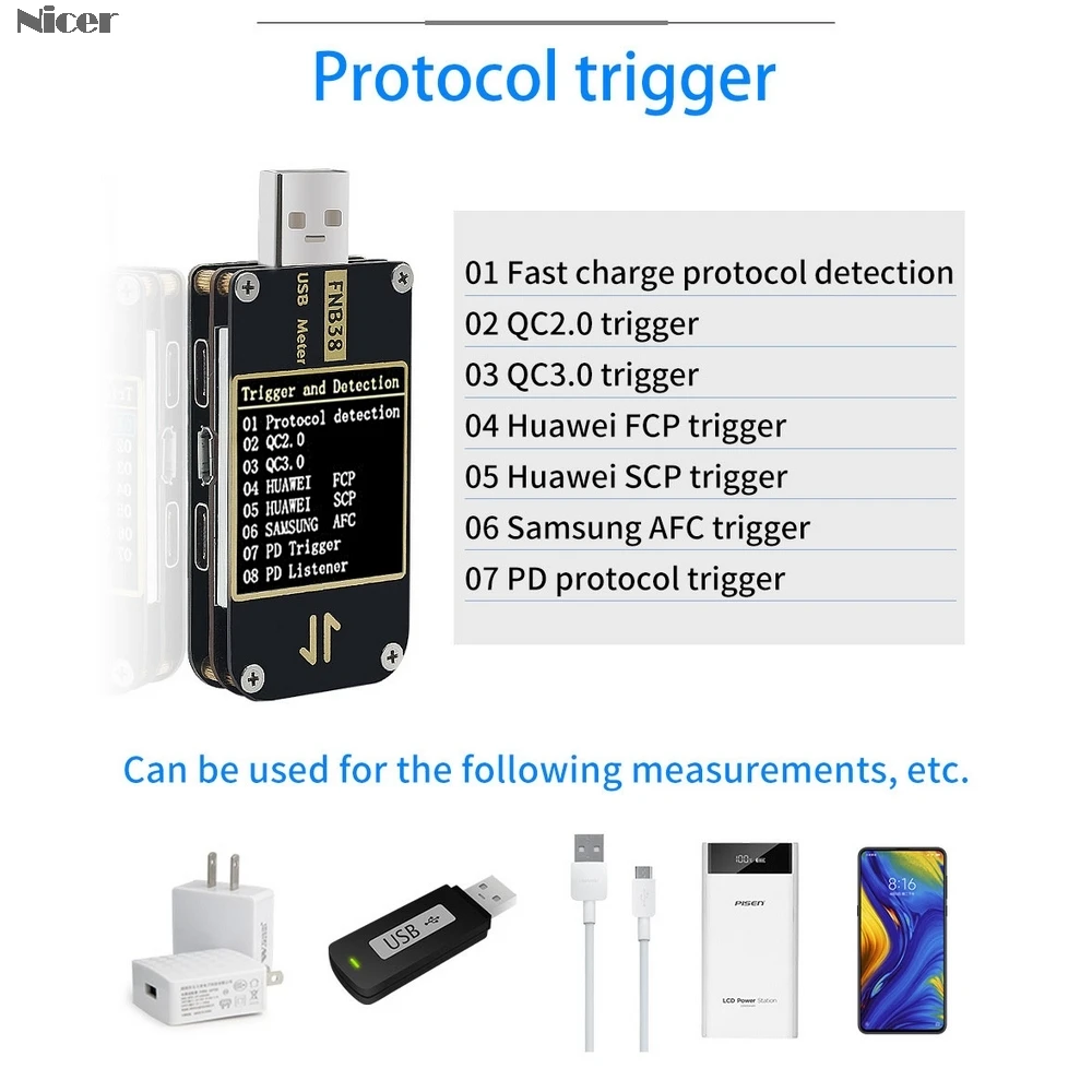 Тестер емкости протокола, измеритель тока и напряжения FNB38, быстрая зарядка, интеллектуальный тестер безопасности er QC4 + PD3.0 2,0 PPS, USB-тестер