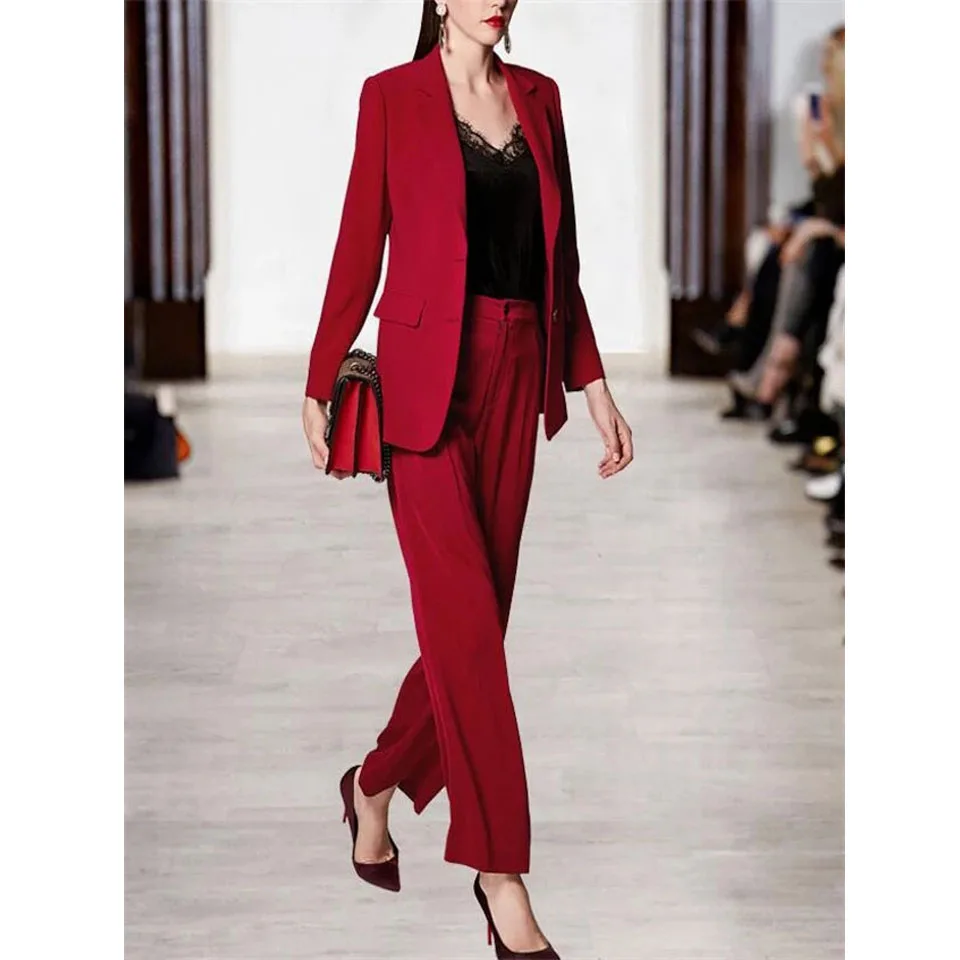 Красный женский брючный костюм, пиджак и брюки, женские деловые костюмы, Блейзер, официальная офисная форма, стильный женский брючный костюм