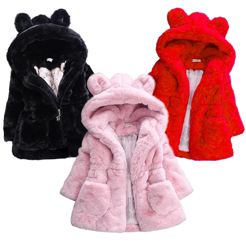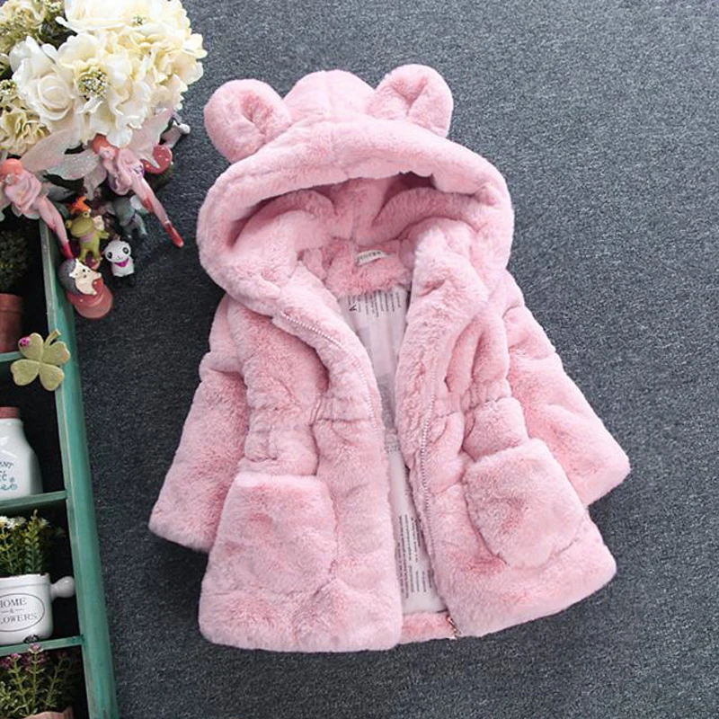 Детские штаны для мальчиков и девочек с искусственным мехом теплая куртка с капюшоном для девочек на осень и зиму, Одежда для младенцев, детская куртка