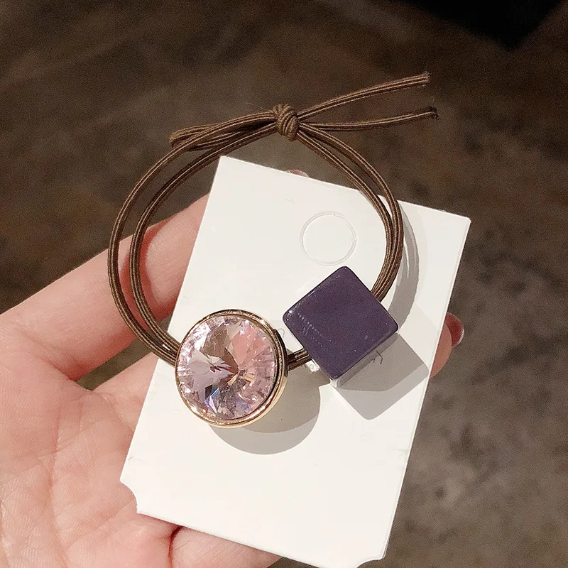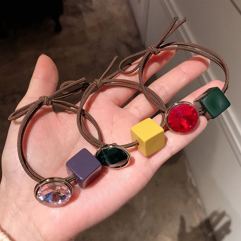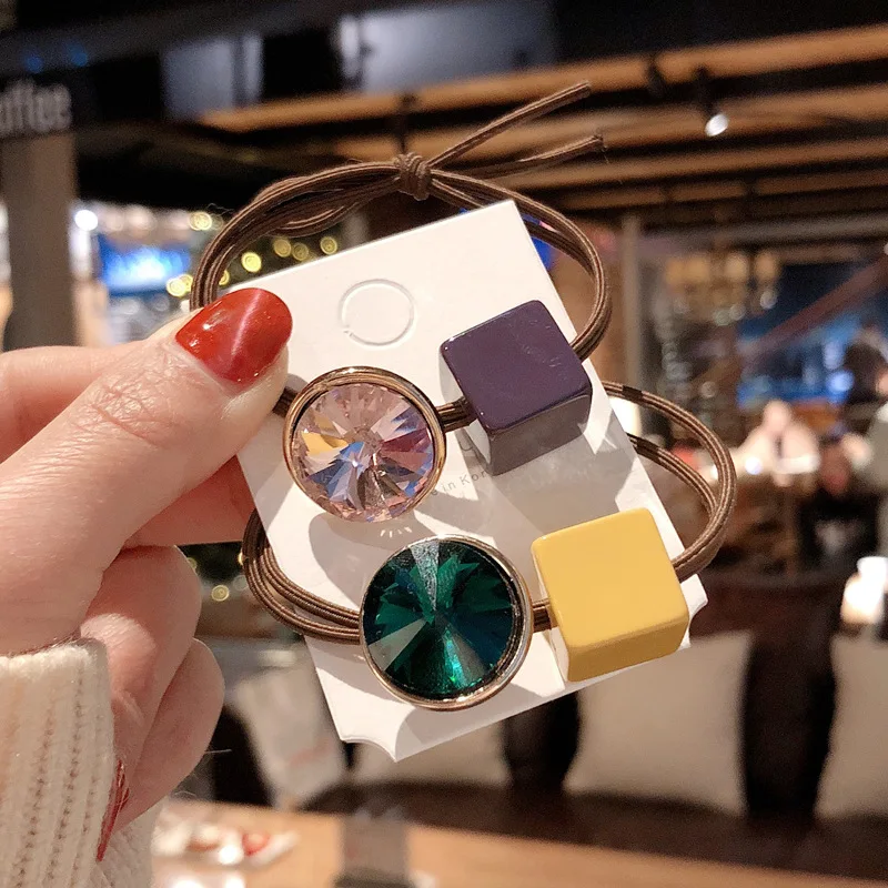 Корейские резинки для волос треугольной формы с блестящими кристаллами из смолы в форме куба, коричневые стандартные эластичные резинки для волос, аксессуары для волос, резиновые кольца