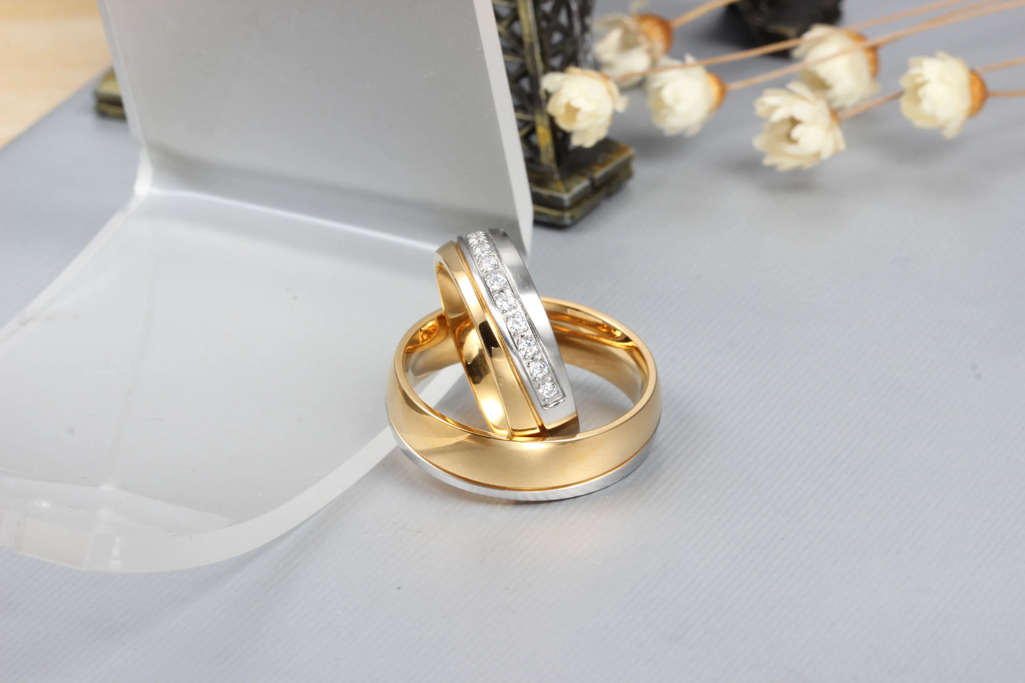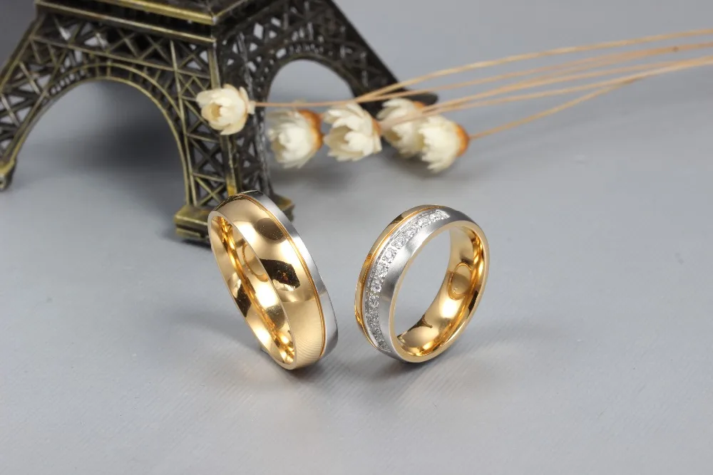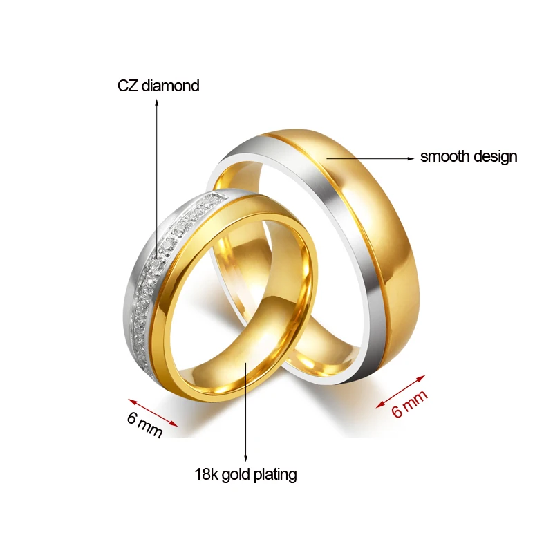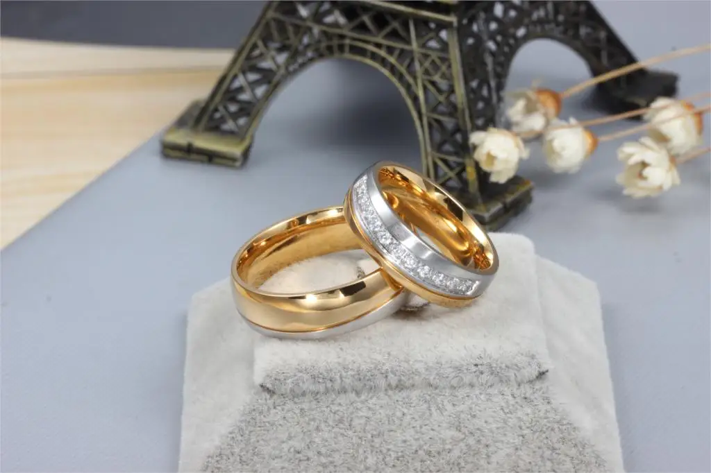 Обручальное кольцо для женщинмужчин золотого цвета обручальное кольцо для влюбленных из нержавеющей стали ювелирные изделия Подарок на годовщину американский размер R00102