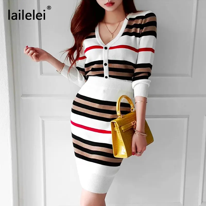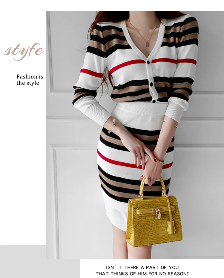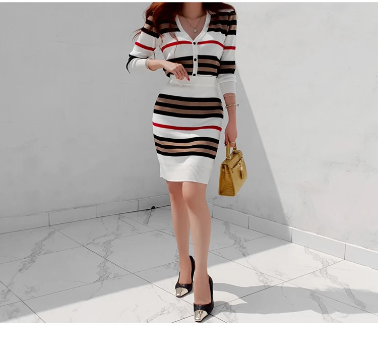Женский трикотажный комплект из двух предметов, кардиган с юбкой и коротким рукавом, элегантная одежда в Корейском стиле, модная одежда для женщин 2