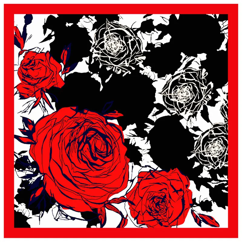Женский Шелковый квадратный шарф с цветочным принтом, 90x90 см