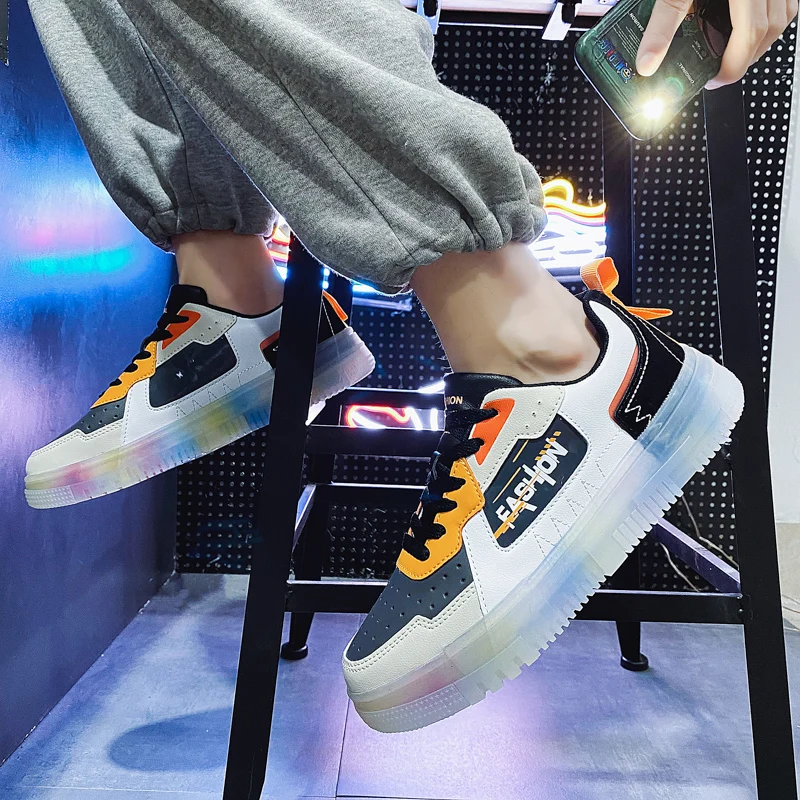 Новое поступление 2022 года; Спортивная обувь; Мужская обувь из искусственной кожи на плоской подошве с прозрачной подошвой; Мужские кроссовки; Дизайнерская мужская обувь для бега; Прогулочная обувь