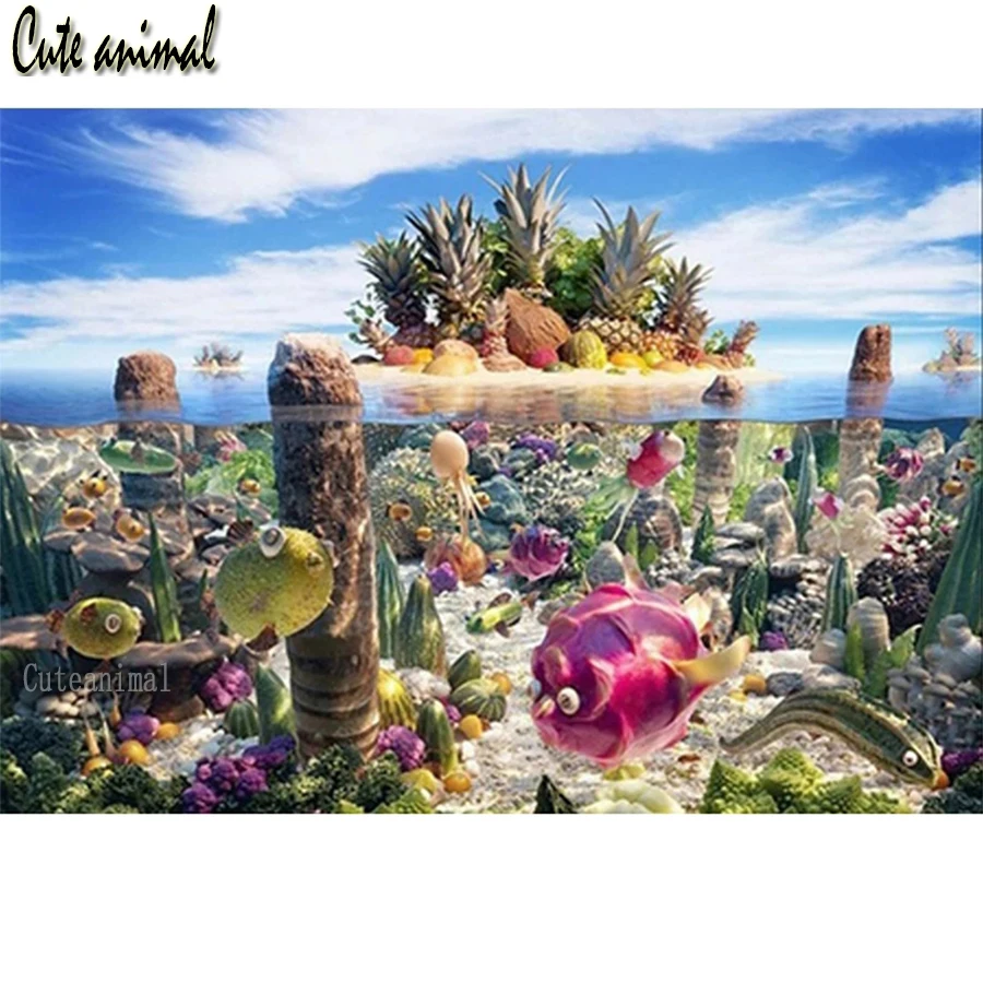 Квадратная Круглая Мозаика 5d, алмазная живопись с изображением морских рыб, фруктов, абстрактное искусство, алмазные Стразы, алмазная вышивка