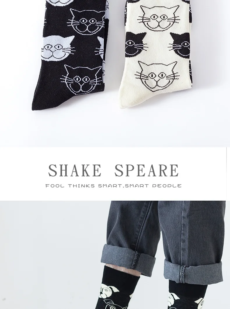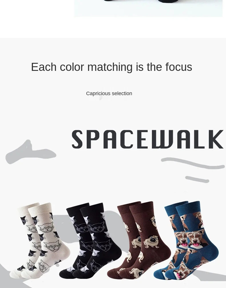 DTSTARZG, новинка смешные мужские носки, хлопковые носки с мультяшными животными, для весны, осени и зимы