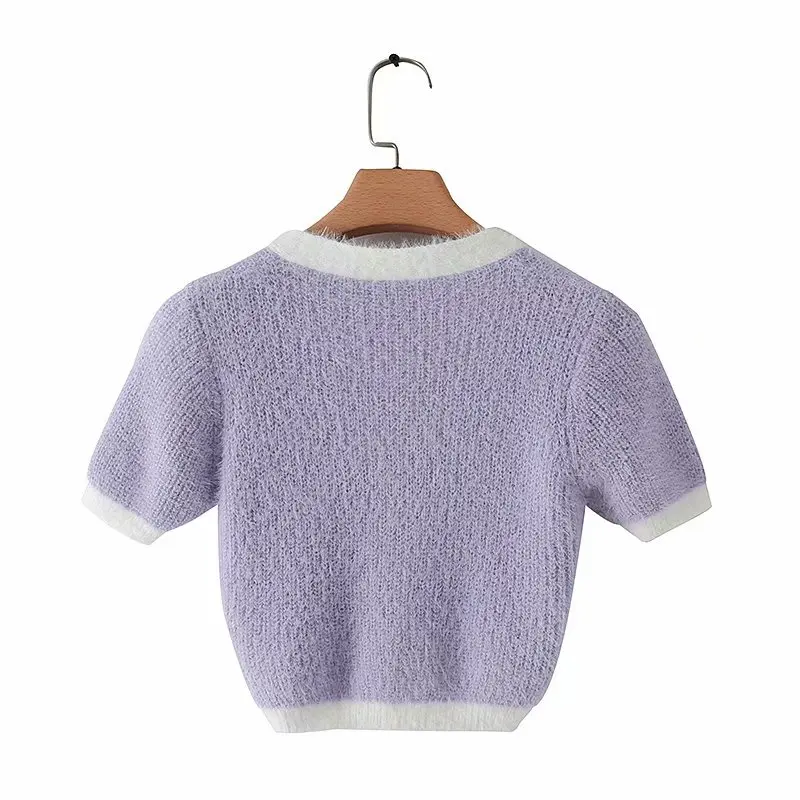 Женский винтажный свитер в стиле панк, розовый трикотажный укороченный свитер в Корейском стиле, фиолетового цвета, весна 2020