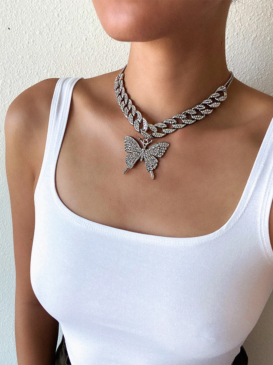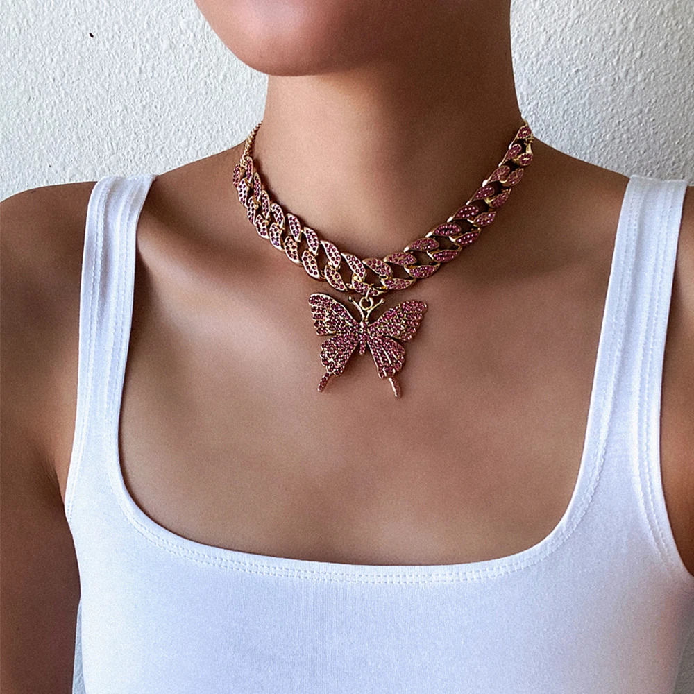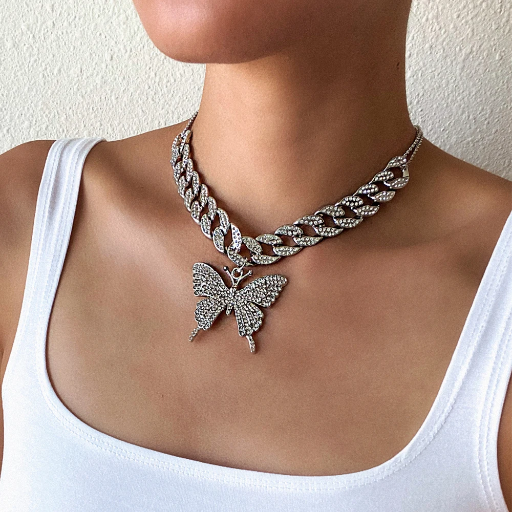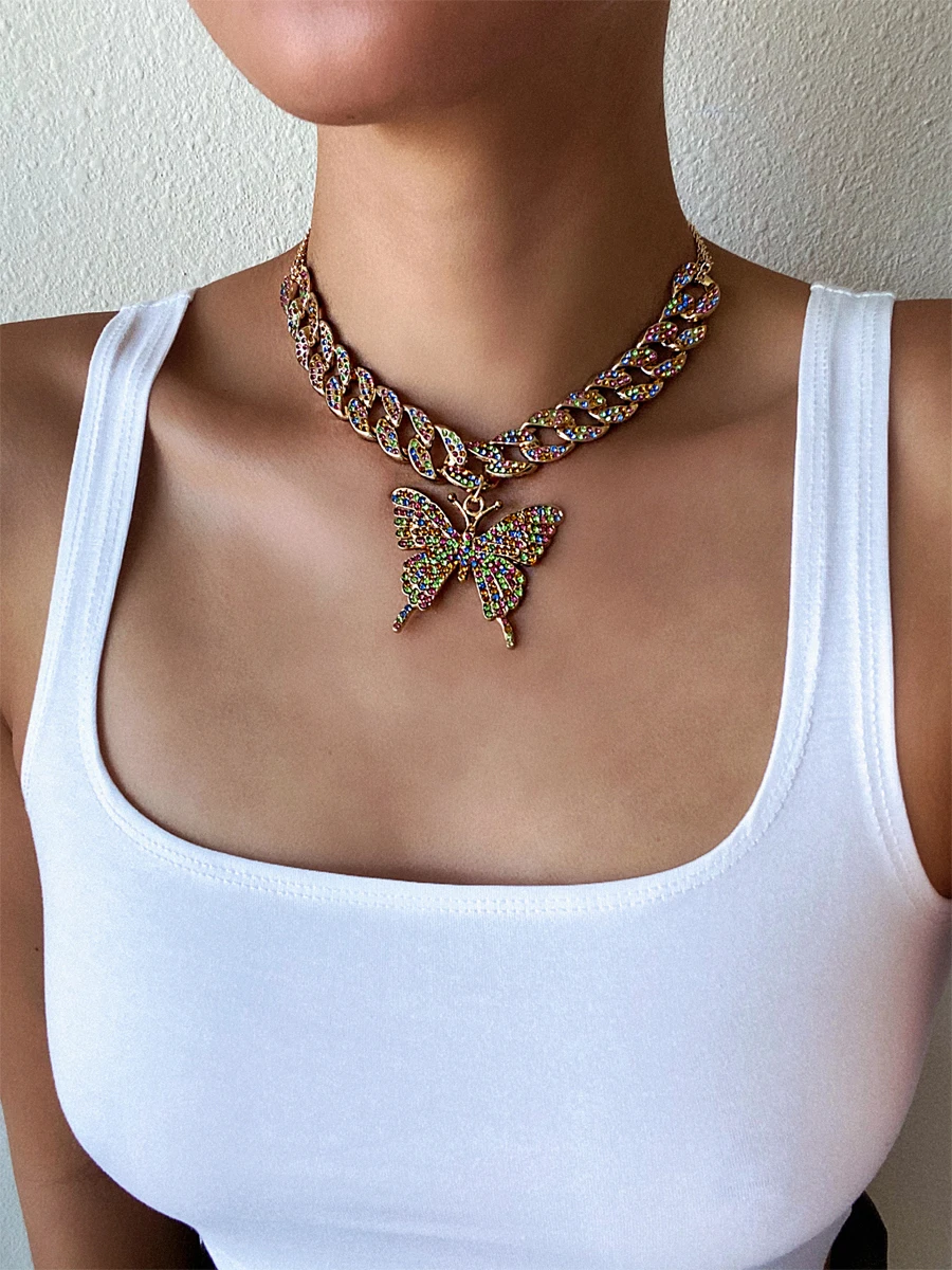 Кубинская цепочка ожерелье с бабочкой женское 2020 чокер ювелирные изделия Модные ювелирные изделия аксессуары