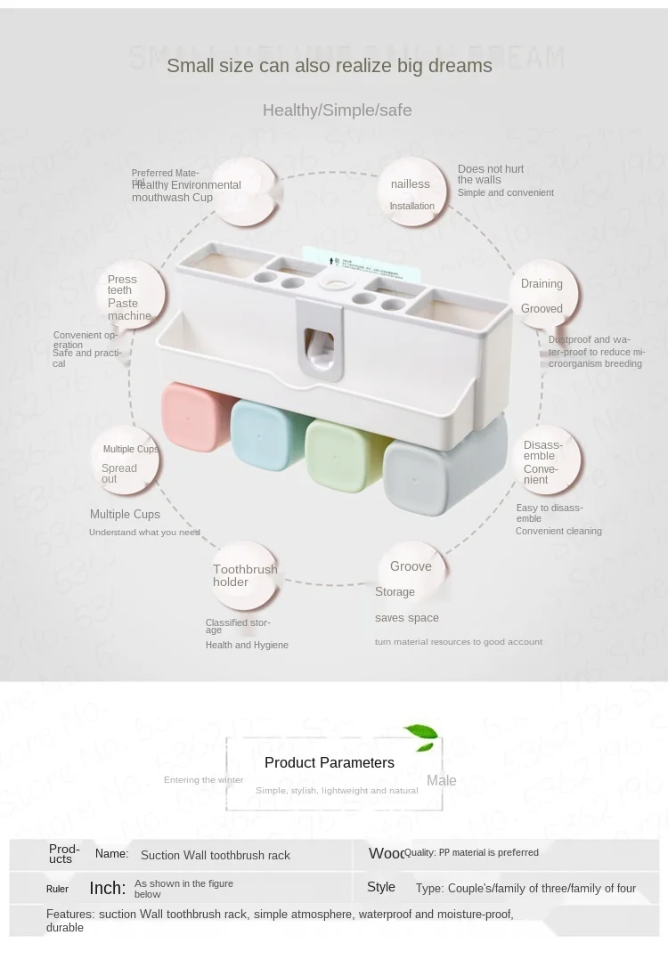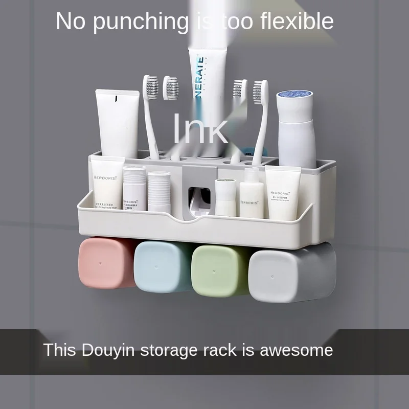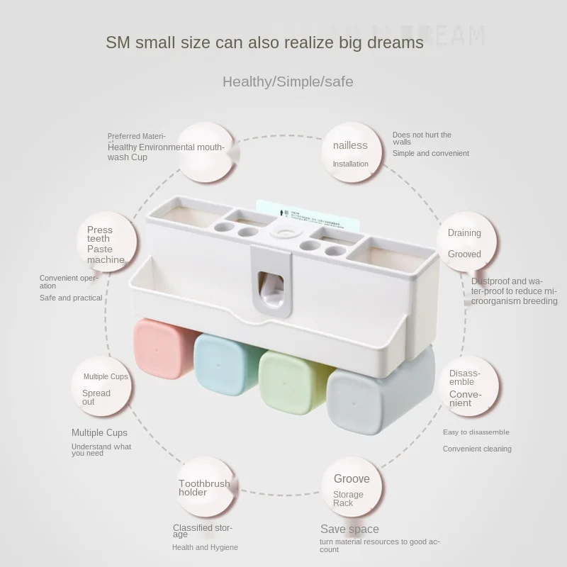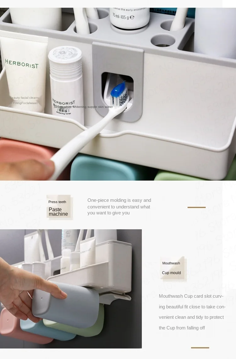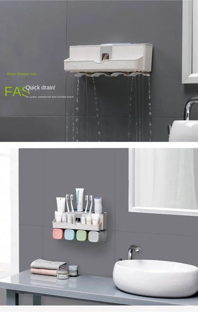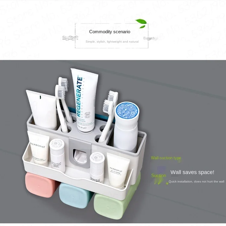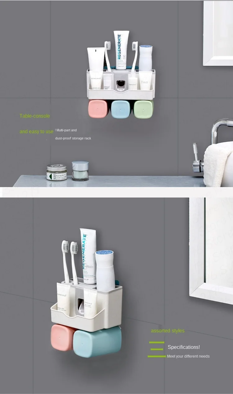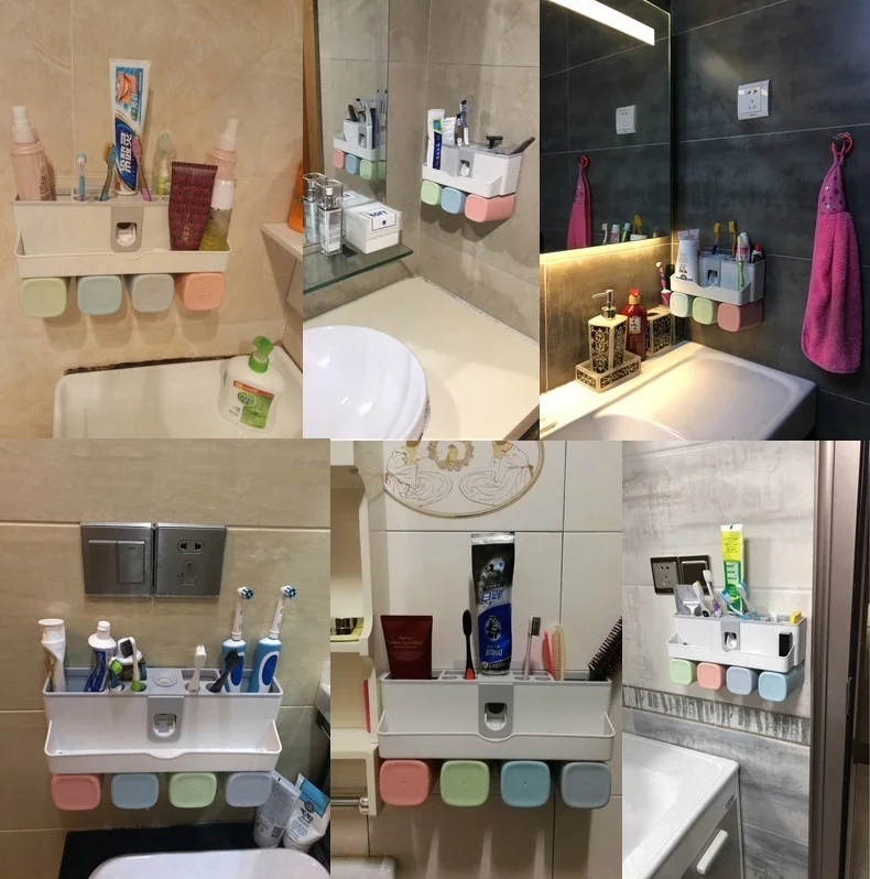 Присоска для зубной пасты настенная, пластиковая, автоматическая, с чашками