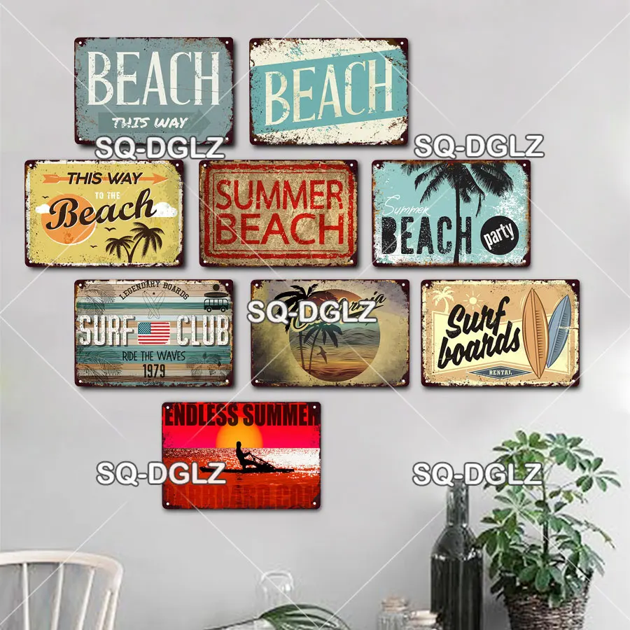 SQ-DGLZ пляжные металлический знак Винтаж металлической бляшкой дор...