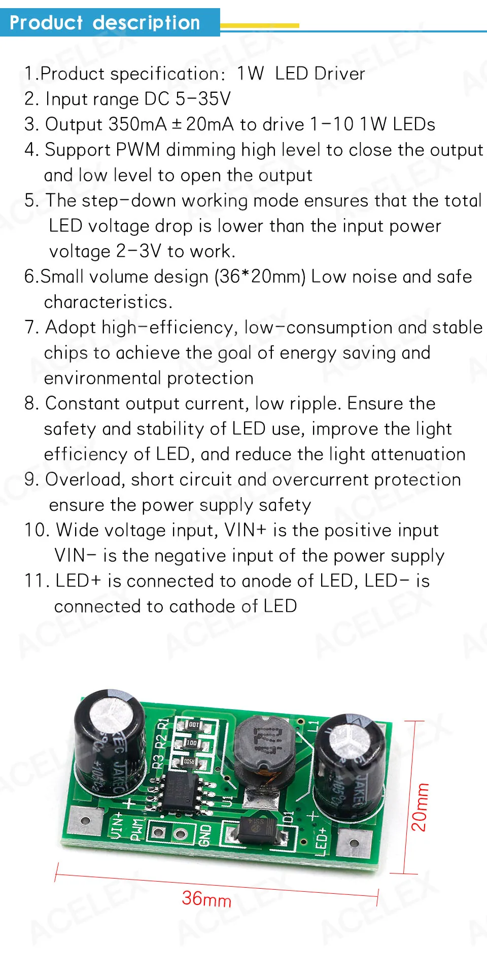 Электронные компоненты модуль постоянного тока 3 Вт светодиодный драйвер 700 мА PWM диммирующий Вход 5-35 В 1 Вт