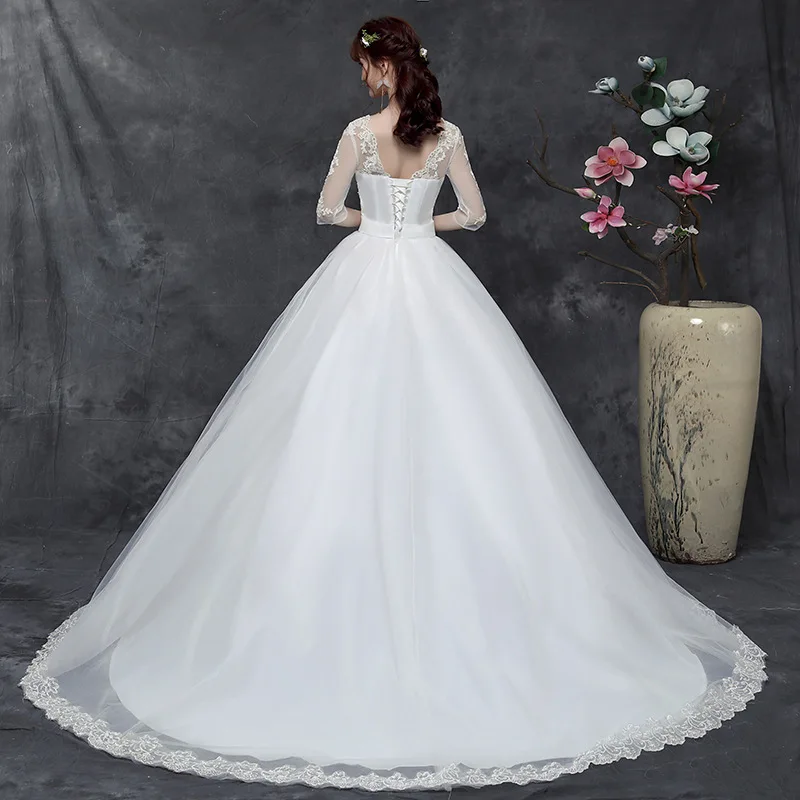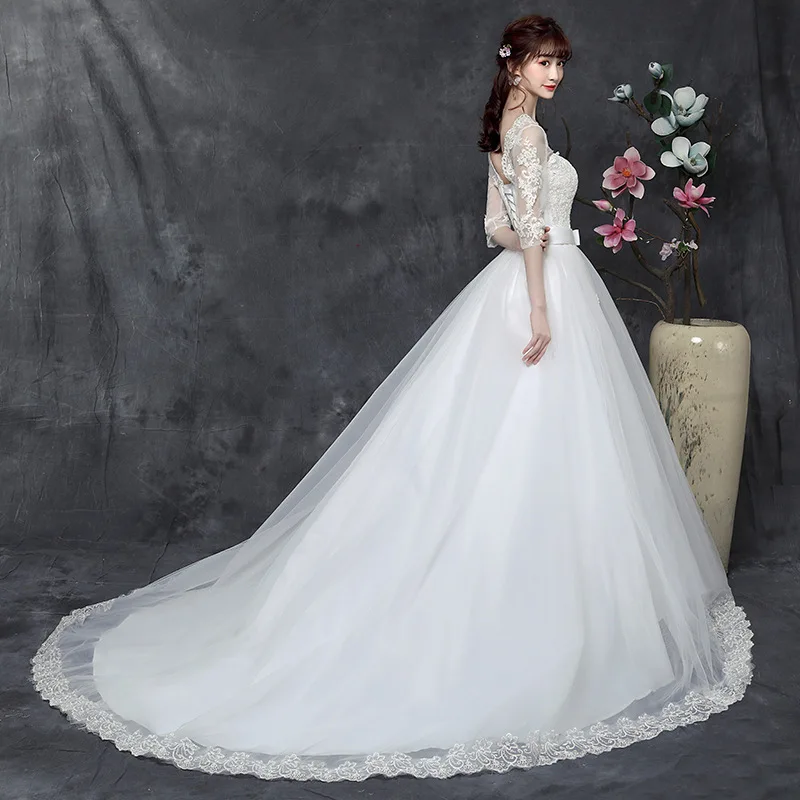 Женское свадебное платье с вышивкой, длинным рукавом средней длины,...