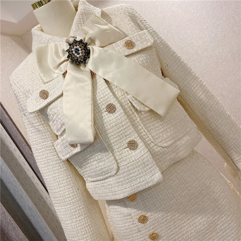 Женский твидовый костюм с бахромой, костюм из 2 предметов, пиджак с длинным рукавом и V-образным вырезом на пуговицах, зима 2021, короткая юбка комплект