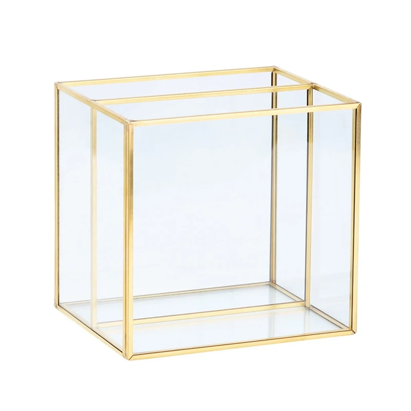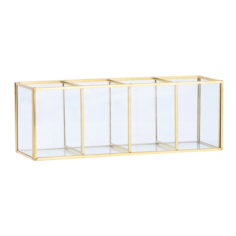 Золотистый стеклянный держатель для кистей для макияжа, контейнер для хранения, держатель для колец и сережек, прозрачный стеклянный декоративный держатель для карандашей и ручек, дисплей для красоты