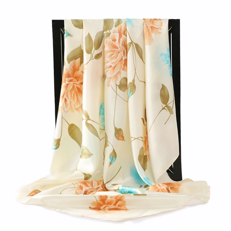 Модный Шелковый Атласный платок с цветочным принтом, шарф для волос для женщин, квадратные шали и палантины 90*90 см, зимние шарфы для женщин 2021