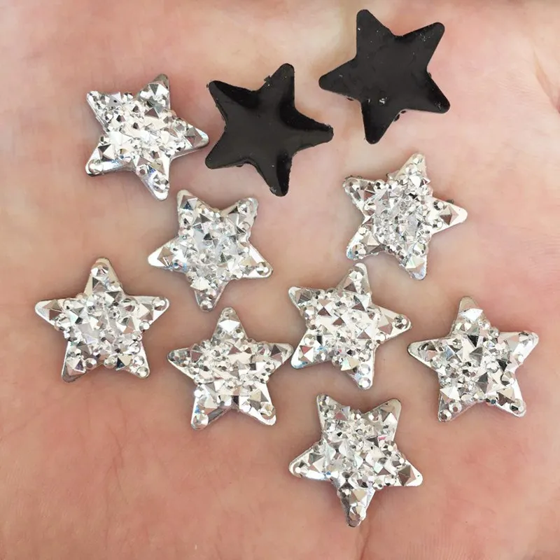 50 шт. 16 мм Полимерная серебряная звезда с плоским основанием стра...