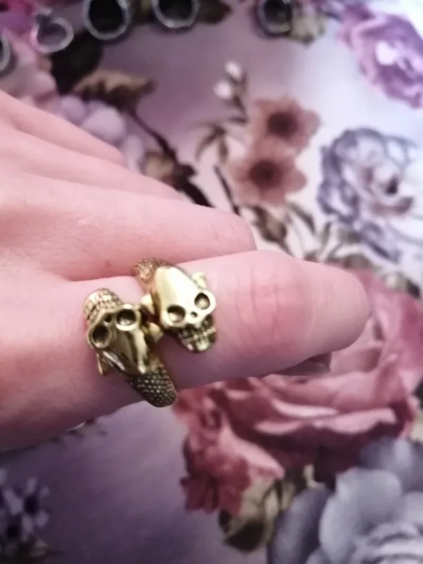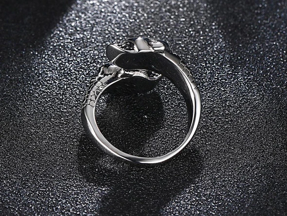 Кольца с черепами для мужчин и женщин, мужское готическое панк кольцо из нержавеющей стали со змеиным узором, открытое регулируемое кольцо на палец