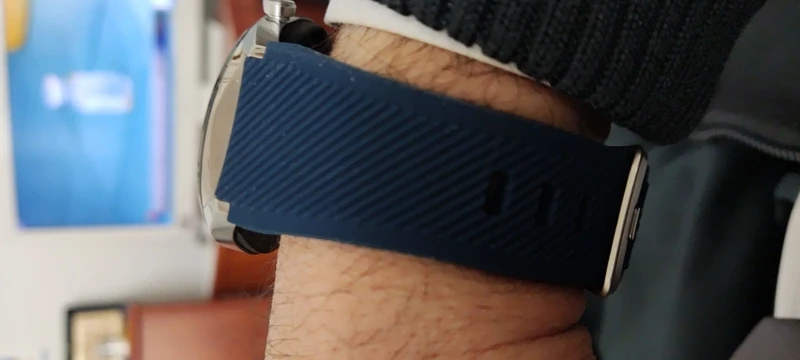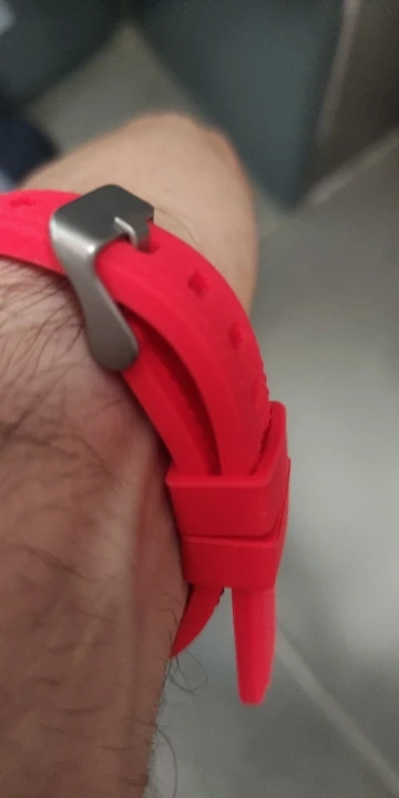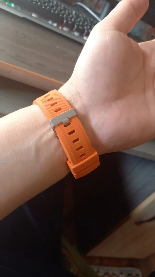 Очень качественный ремешок, немного толще стандартного. Однако при долгом ношении потеет рука но не критично.Цвет в реальности отличается от картинки, он более ярко ораньжевый. Доставка две недели, очень быстро.