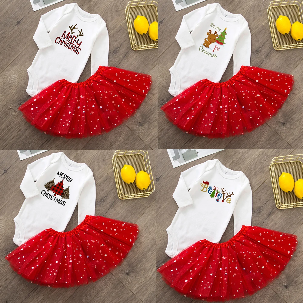 Комбинезон с принтом рождественских букв My First + детская юбка-па...