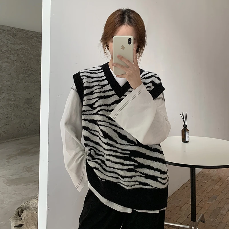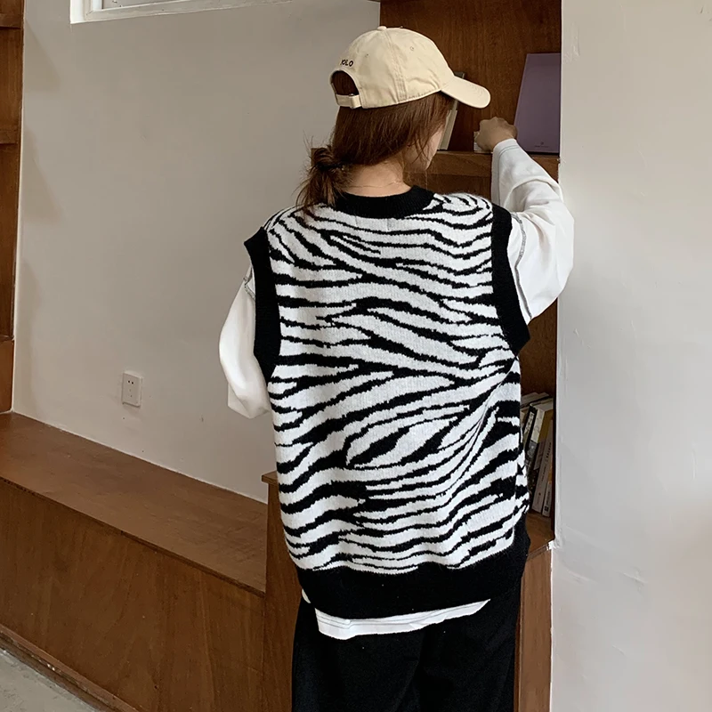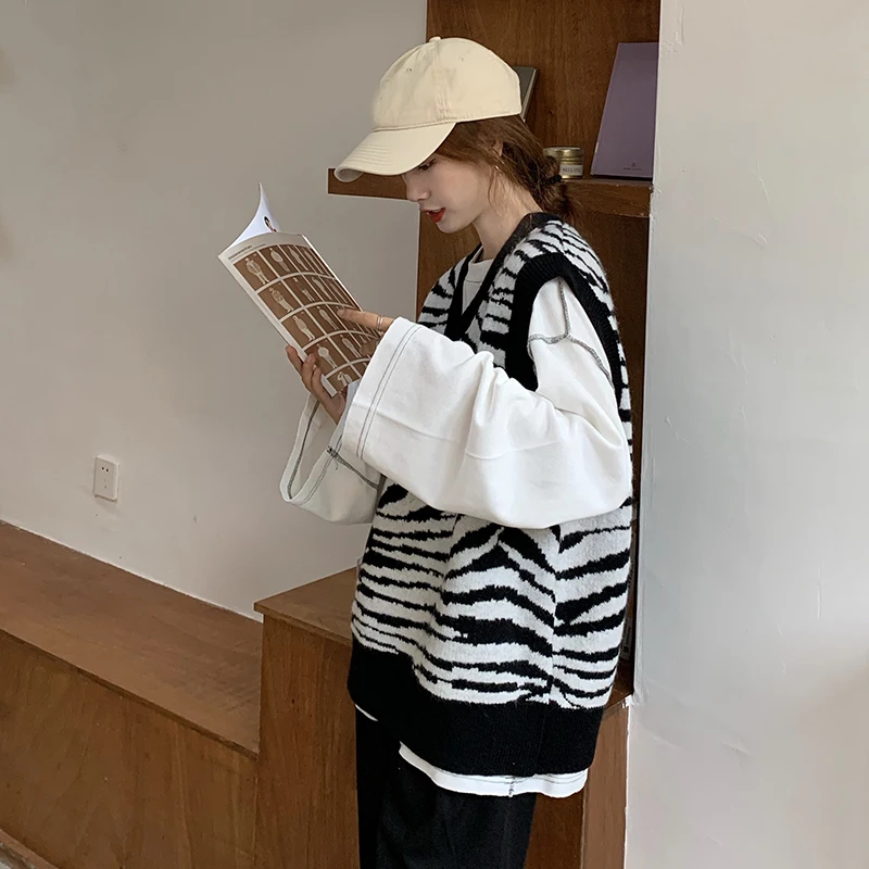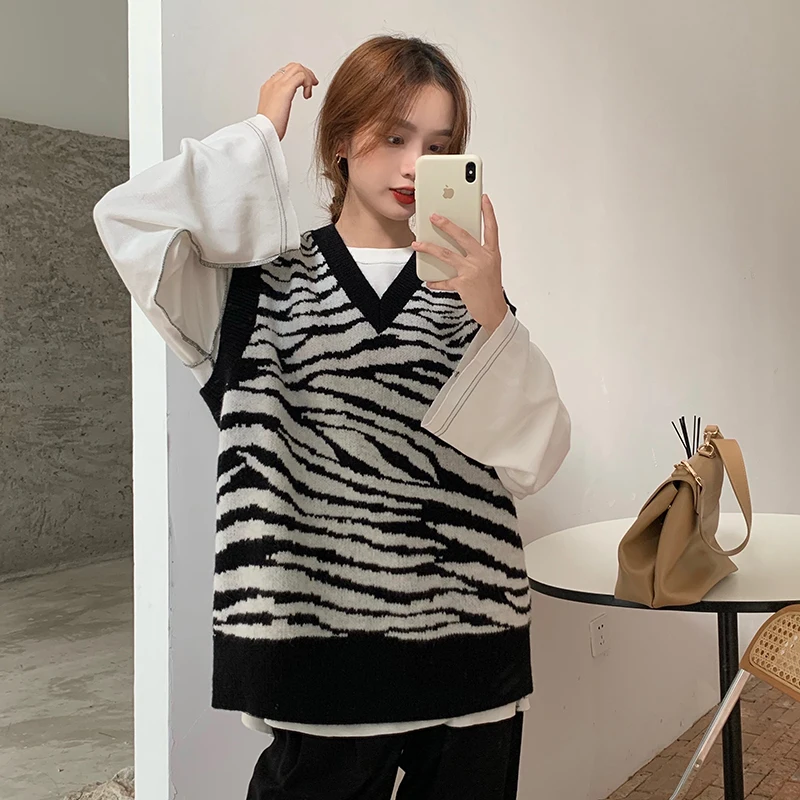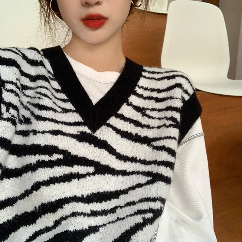 Винтажный свободный свитер с полосками зебры, жилет для женщин, Осень-зима, Корейская версия, женский жилет