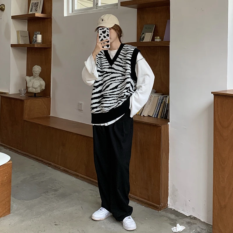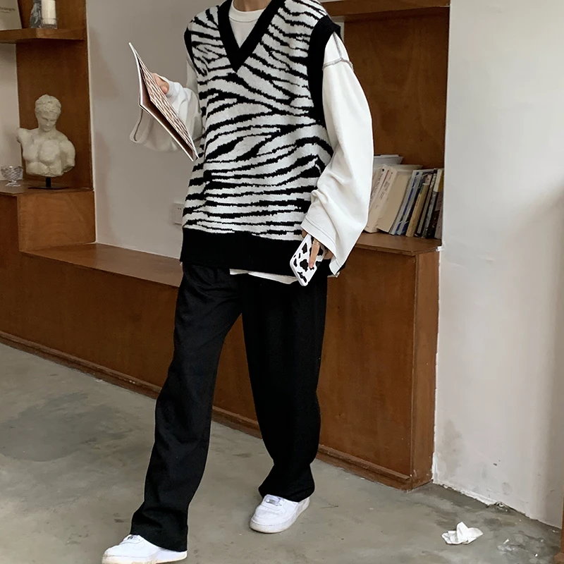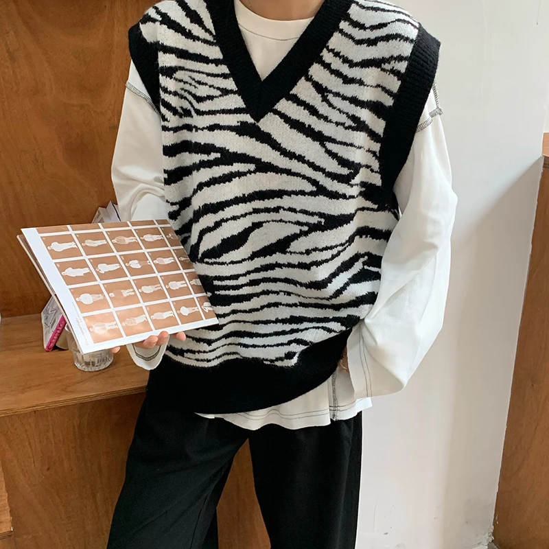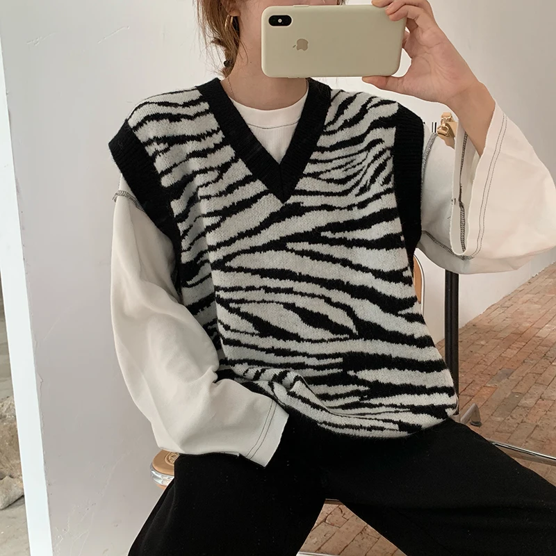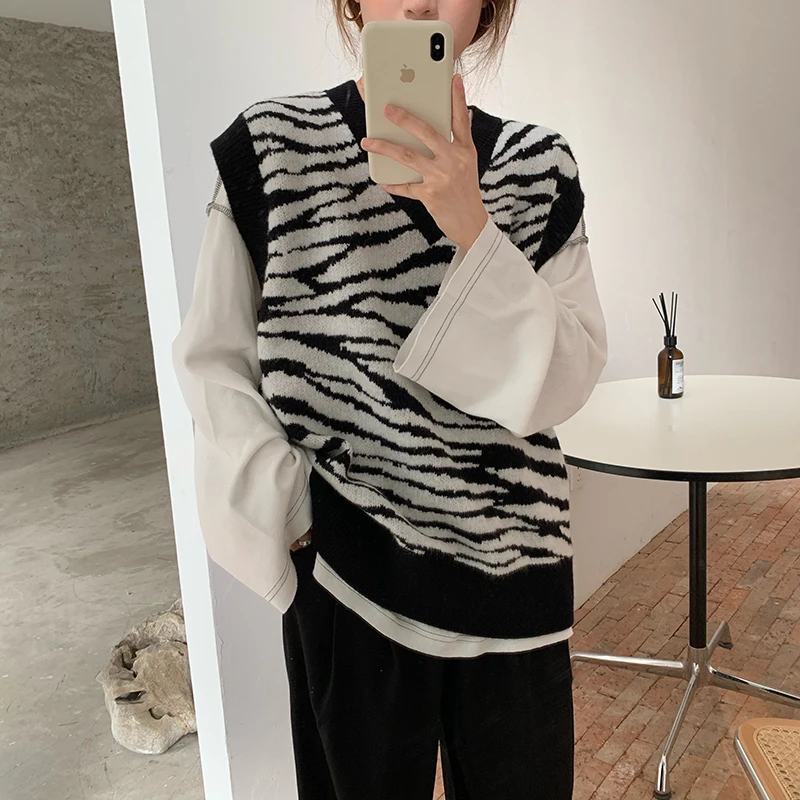 Винтажный свободный свитер с полосками зебры, жилет для женщин, Осень-зима, Корейская версия, женский жилет