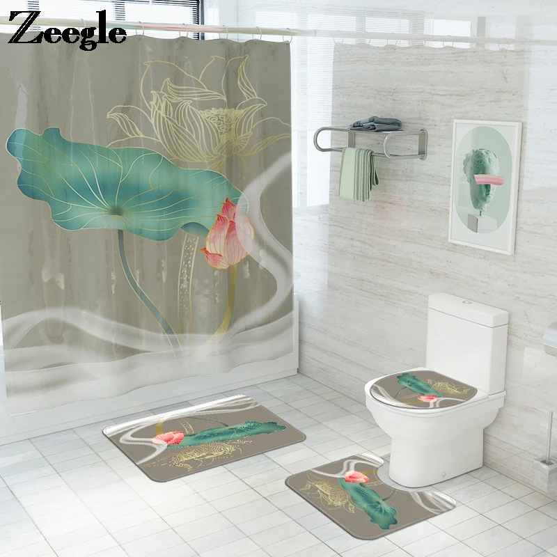 Zeegle коврик для ванной и занавеска для душа, набор цветочных ковриков для ванной комнаты из микрофибры, абсорбирующий напольный коврик для ванной комнаты
