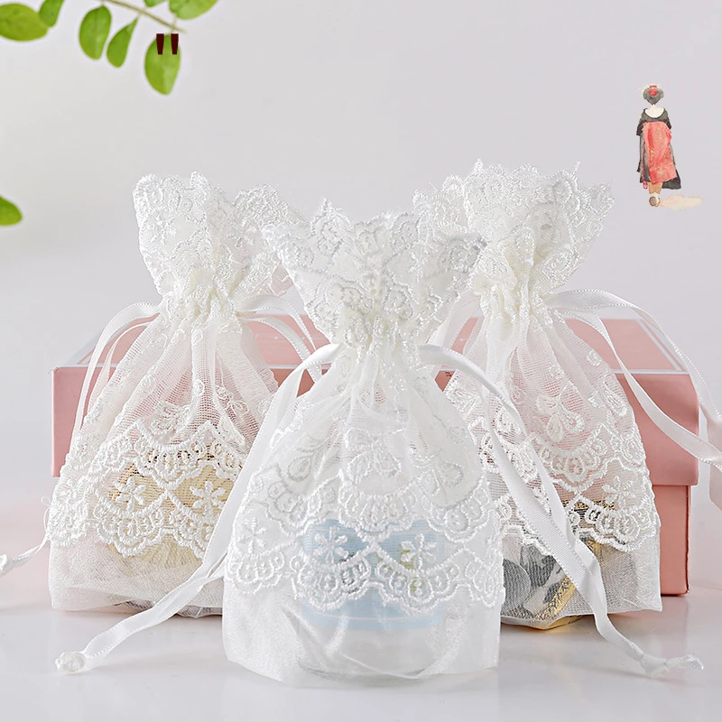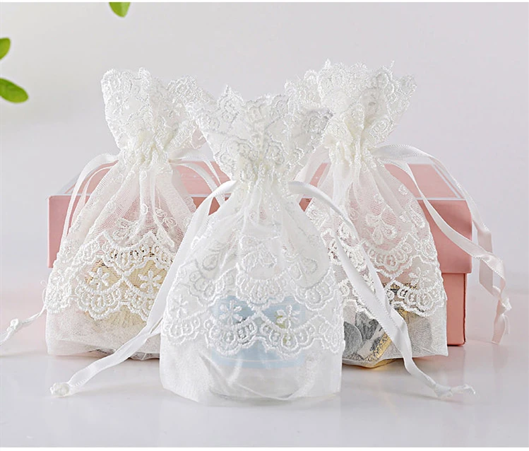 2050100 шт. креативные белые кружева Highend мешочек на шнурке для украшений плетеные карманные Цветочные пакеты вечерние свадебные конфеты подарочные пакеты
