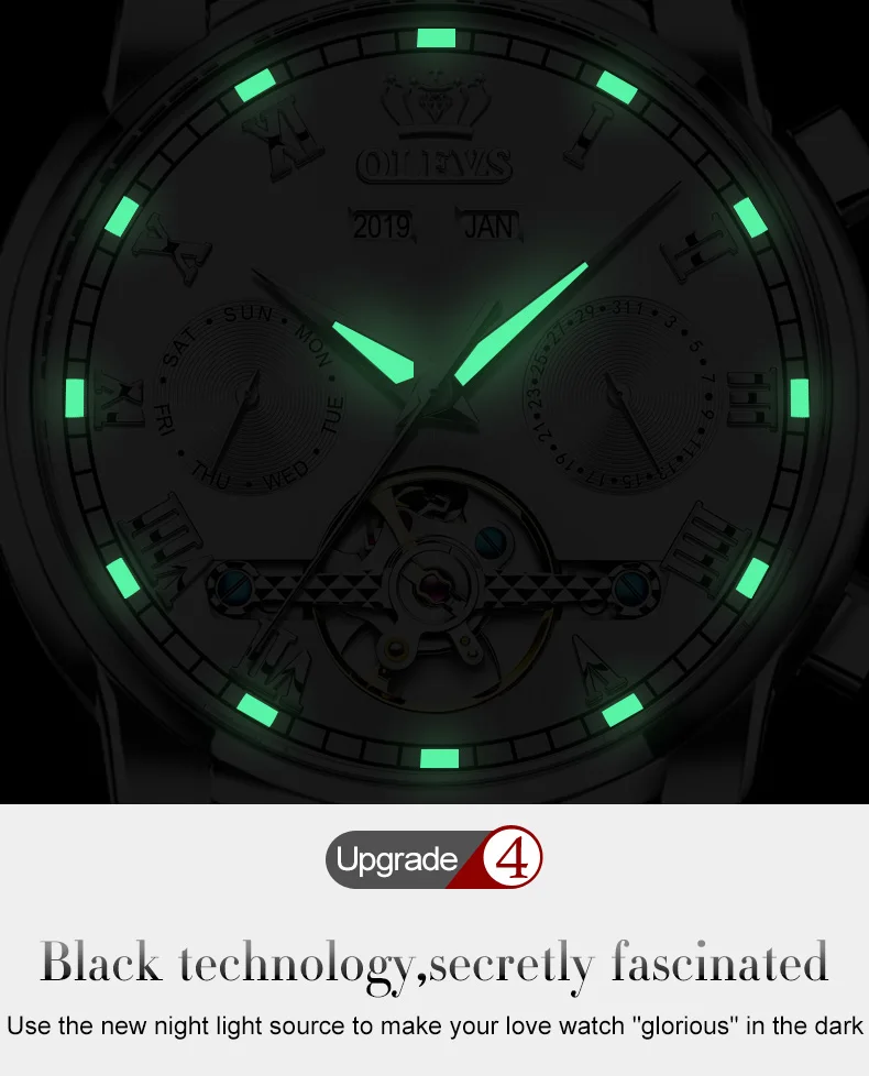 Часы мужские механические из нержавеющей стали, водонепроницаемые, с датой, неделей, 6607
