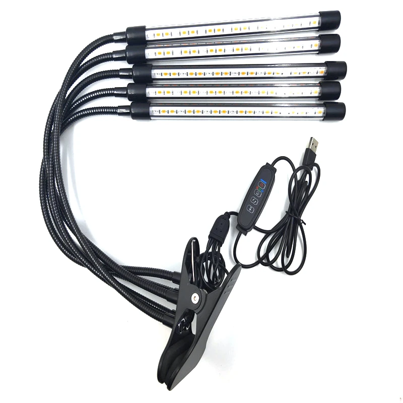 Описание USB-лампы для роста: Срок службы: 50000 часов 3 режима таймера-3 часа, 6 часов и 12 часов. 5 регулируемых режимов яркости Изготовлен из алюминия и ПВХ, легкий, прочный и хорошо отводит тепло. Низкое энергопотребление и защита окружающей среды. Гибкая рычаг на 360 градусов позволяет регулировать любое направление или зону освещения. Рабочее широкое напряжение: 5 В постоянного тока USB; Частота: 50/60 Гц; Сертификат: CE, ROHS, FCC